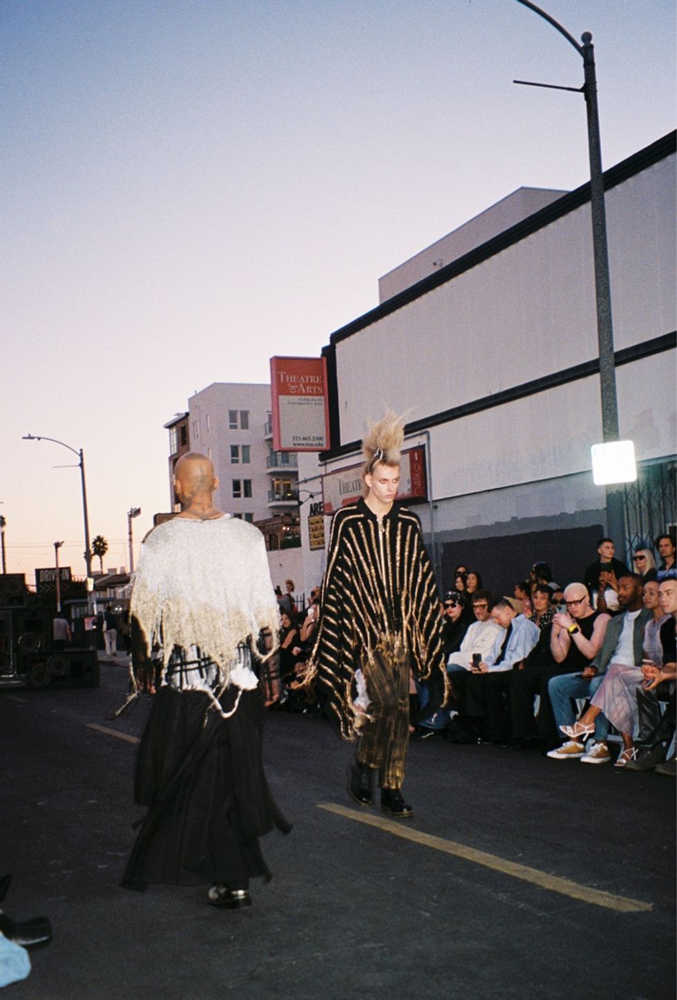 The designer tells PAPER that Hollywood broke him and put him back together, which actually served as the inspiration for the collection. In Japanese culture, kintsugi is a philosophy that teaches people to accept and celebrate flaws. With this ideology in mind, Michael introduced new styles, as well as took silhouettes from previous collections and revamped them.