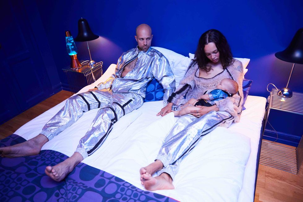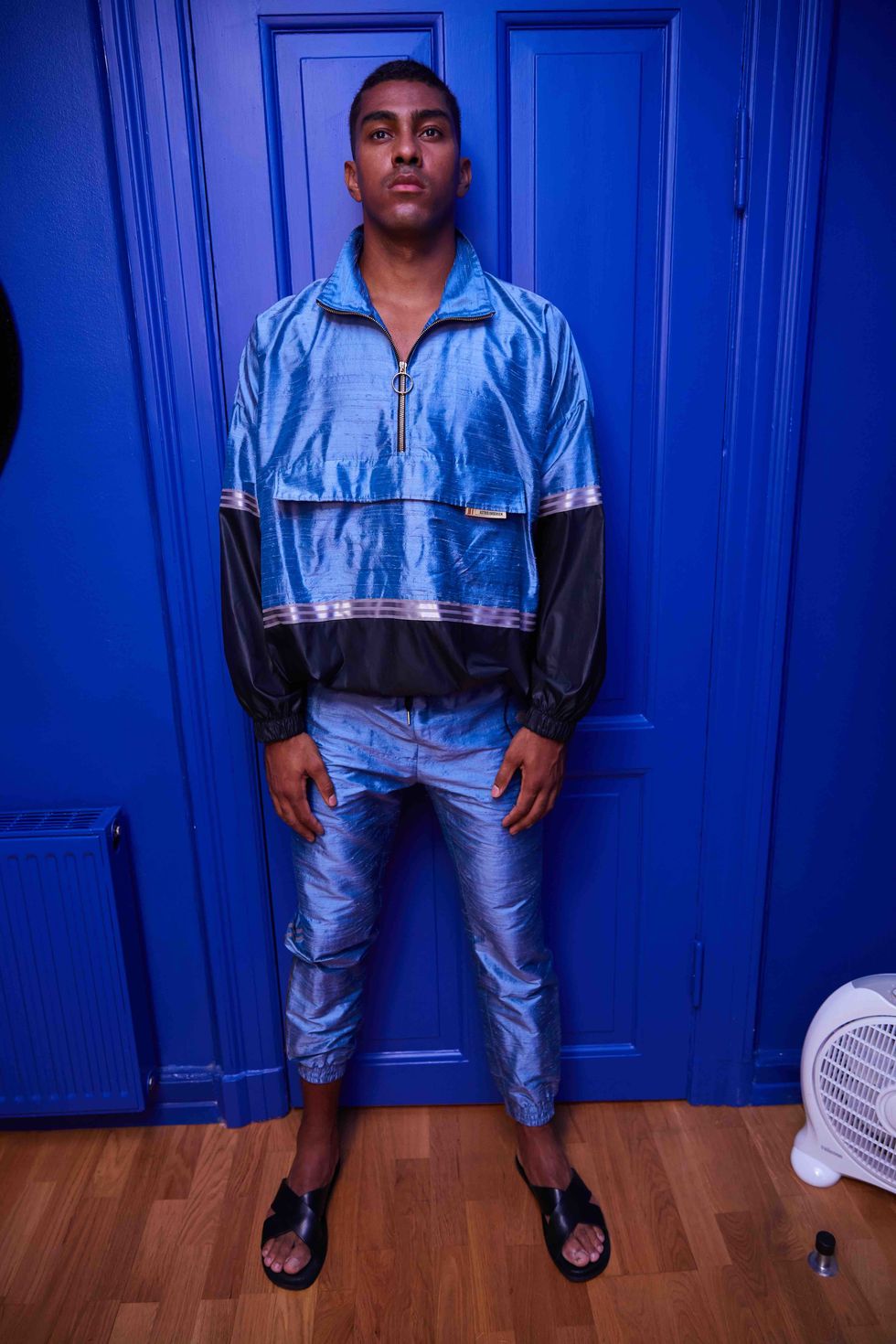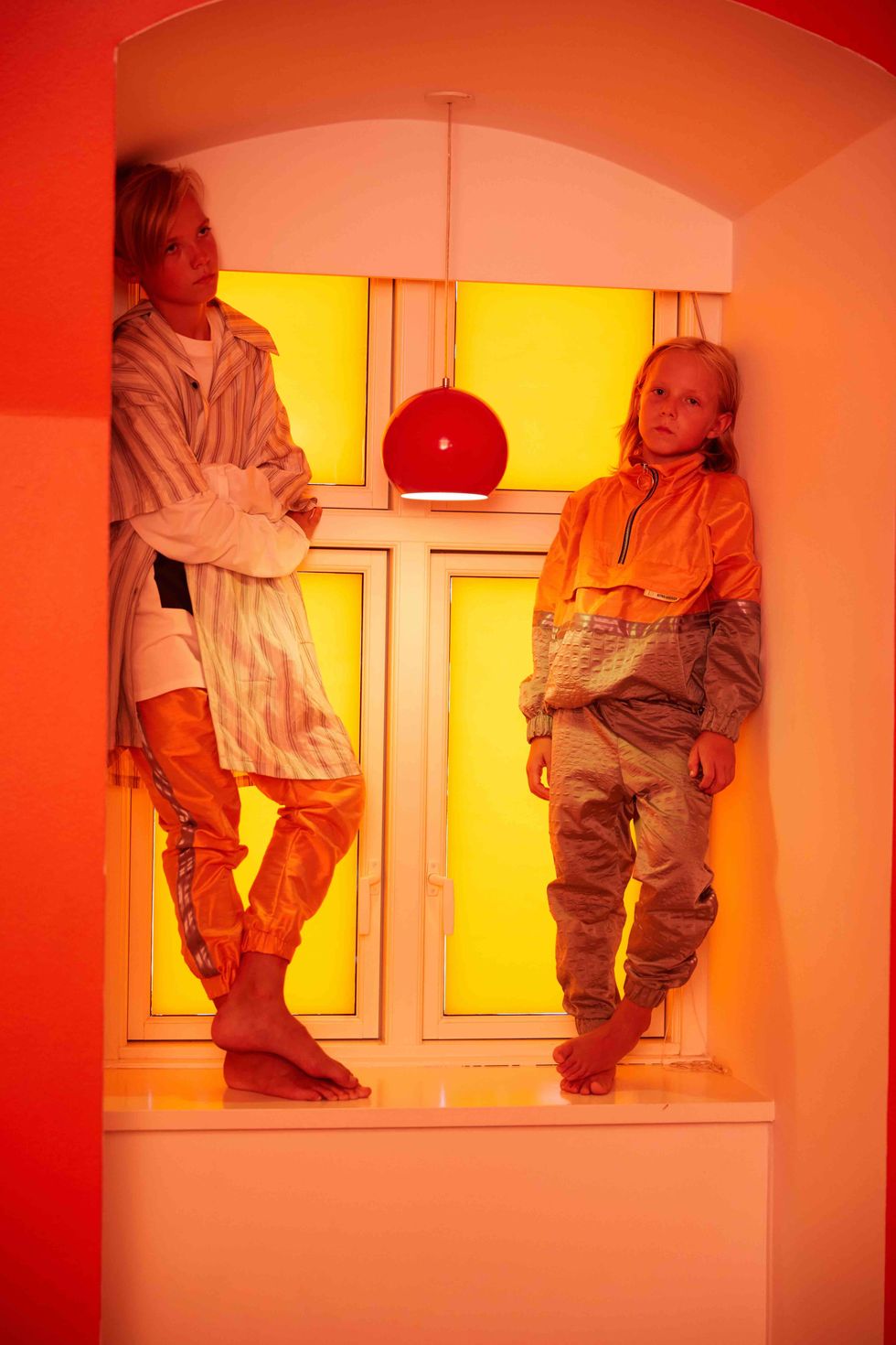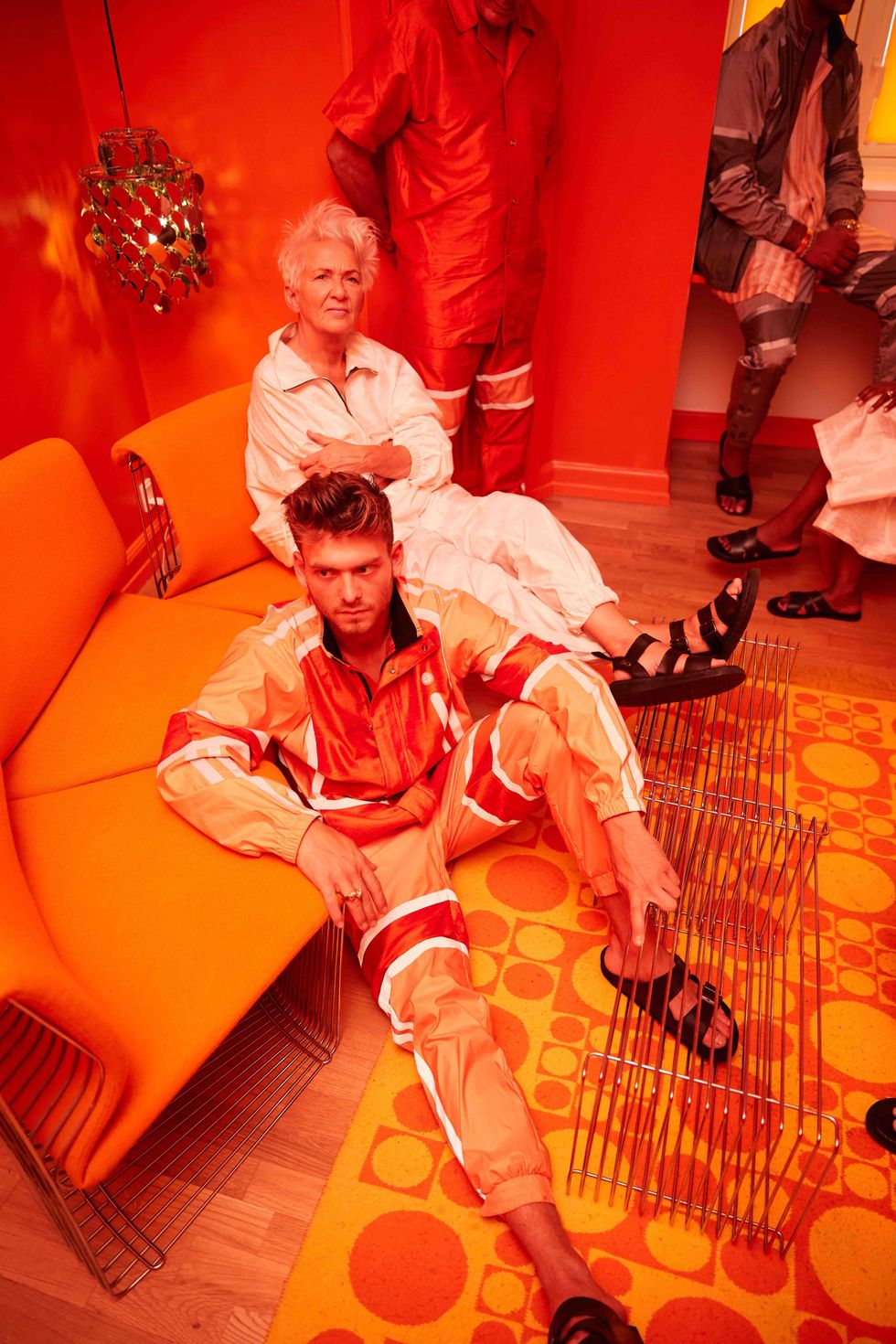 The Panton suite consisted of two rooms — one blue, one blazing orange — filled with models in Andersen's crinkly tailored tracksuits. They were like living mannequins; no one, including kids, moved a muscle. It was especially impressive considering the scorching weather (Copenhagen is a city without much air conditioning, because it never needed it. Climate change!).