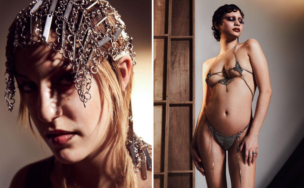 Maŕa Peralta Studio, the unisex jewelry and accessories label founded by Spanish musician and designer Maŕa Peralta, launched its third collection this month titled "Deconstruction." Hardware is inspired by the architecture of New York City and its community. The designer parallels her music composing techniques to create the new collection, recontextualizing materials and compositions from previous collections. The collection consists of repurposed hardware and sustainable steel jewelry and introduces a new take on hardware utility, turning curb chain links into pendants and fixtures into chains.