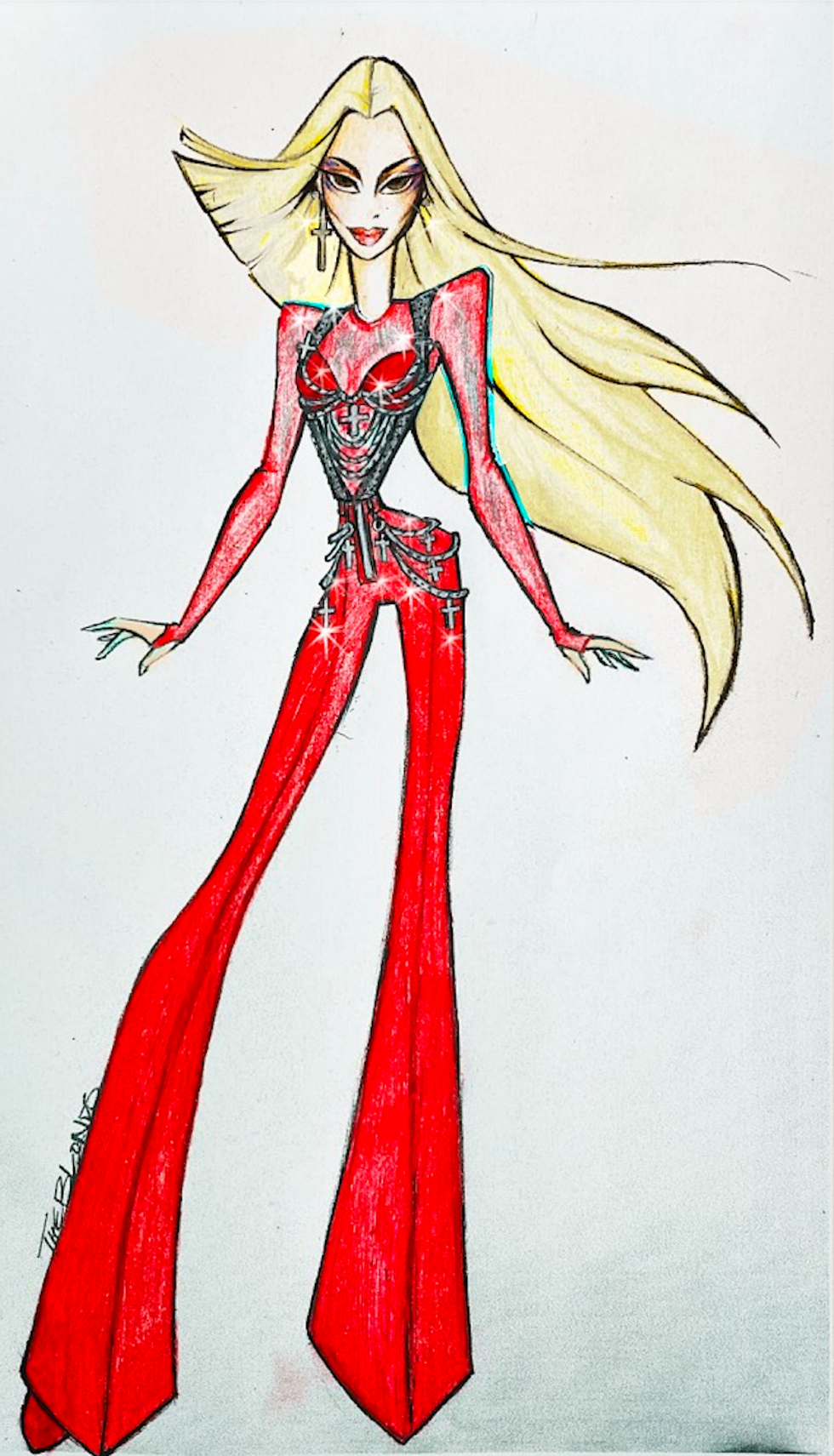 They also take into consideration the artist's inspirations, creativity and style signatures — in this case, Ava Max's sexy pop girl aesthetic — to create an overall look that can resonate and make an impact in the biggest of stadiums. "The production starts with sourcing materials, rendering sketches and presenting a mood board for review as well as taking into consideration the venue and production elements," they said. "Finally after a series of fabric testing, muslins, fittings and detail work, the final look is ready!"
