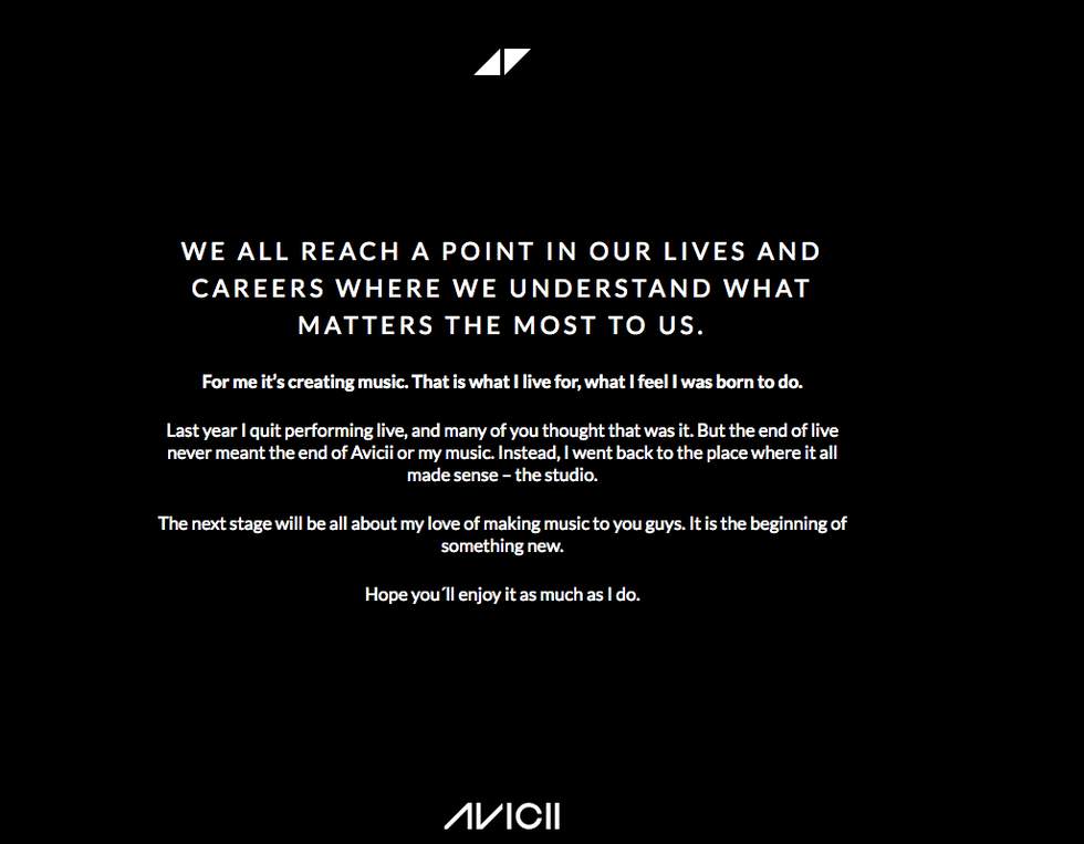 "It is with profound sorrow that we announce the loss of Tim Bergling, also known as Avicii," the statement reads. "The family is devastated and we ask everyone to please respect their need for privacy in this difficult time. No further statements will be given."