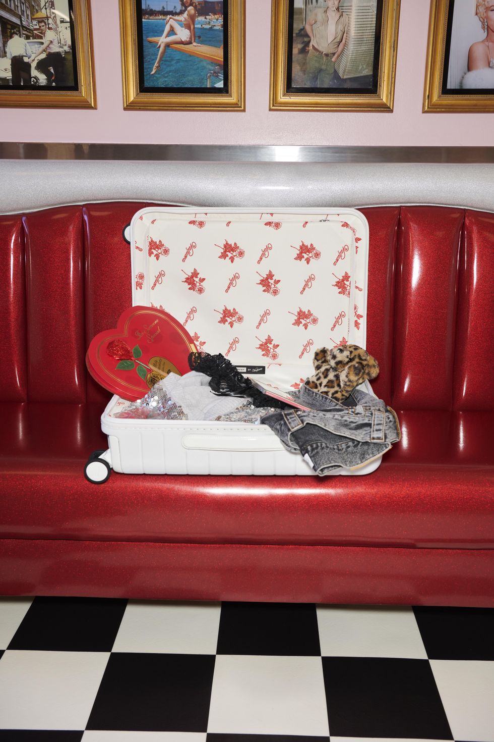 "We wanted to make something that could also be a conversation starter at the airport — who knows who you could meet!” said Vaquera co-designer Bryn Taubensee, whose New York-based label is known for its quirky, underground aesthetic. Alongside Vaquera founder Patric DiCaprio, the two created a semi-transparent bag lined with roses printed on nylon, creating the illusion of a bouquet in an empty suitcase.