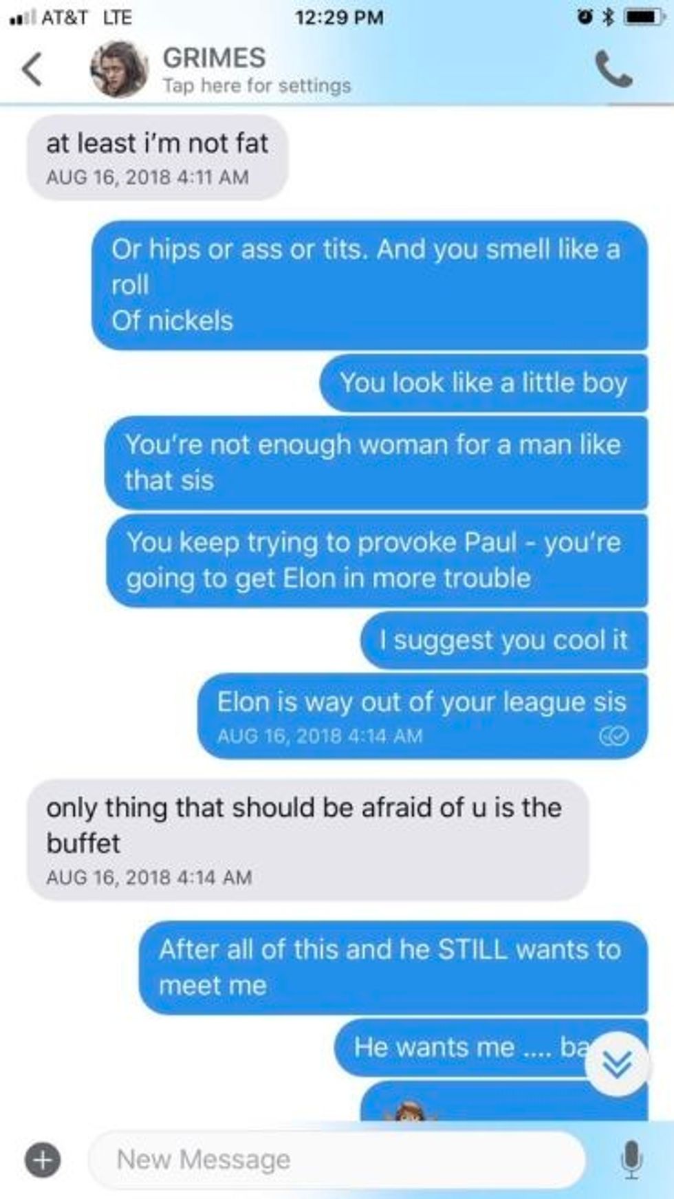 The latest flare-up of the Banks vs. Grimes/Elon Musk debacle (which is alive and well) has produced some indelible new contributions to the Banks canon. Although Azealia previously apologized to Musk and expressed wishes to end their "cat-fight," Musk's lawyer recently called her a "Twitter villain" and a "veteran of long and nonsensical beefs" in an attempt discredit her as a witness in the lawsuit that Musk faces from investors, after his false Tweet that he was taking Tesla private at $420 a share (allegedly, a joke to amuse his lady) cost the company millions. So naturally, Banks took back her apology by sharing a series of texts with Grimes from August, in which both women go full Mean Girls and take turns body-shaming each other.