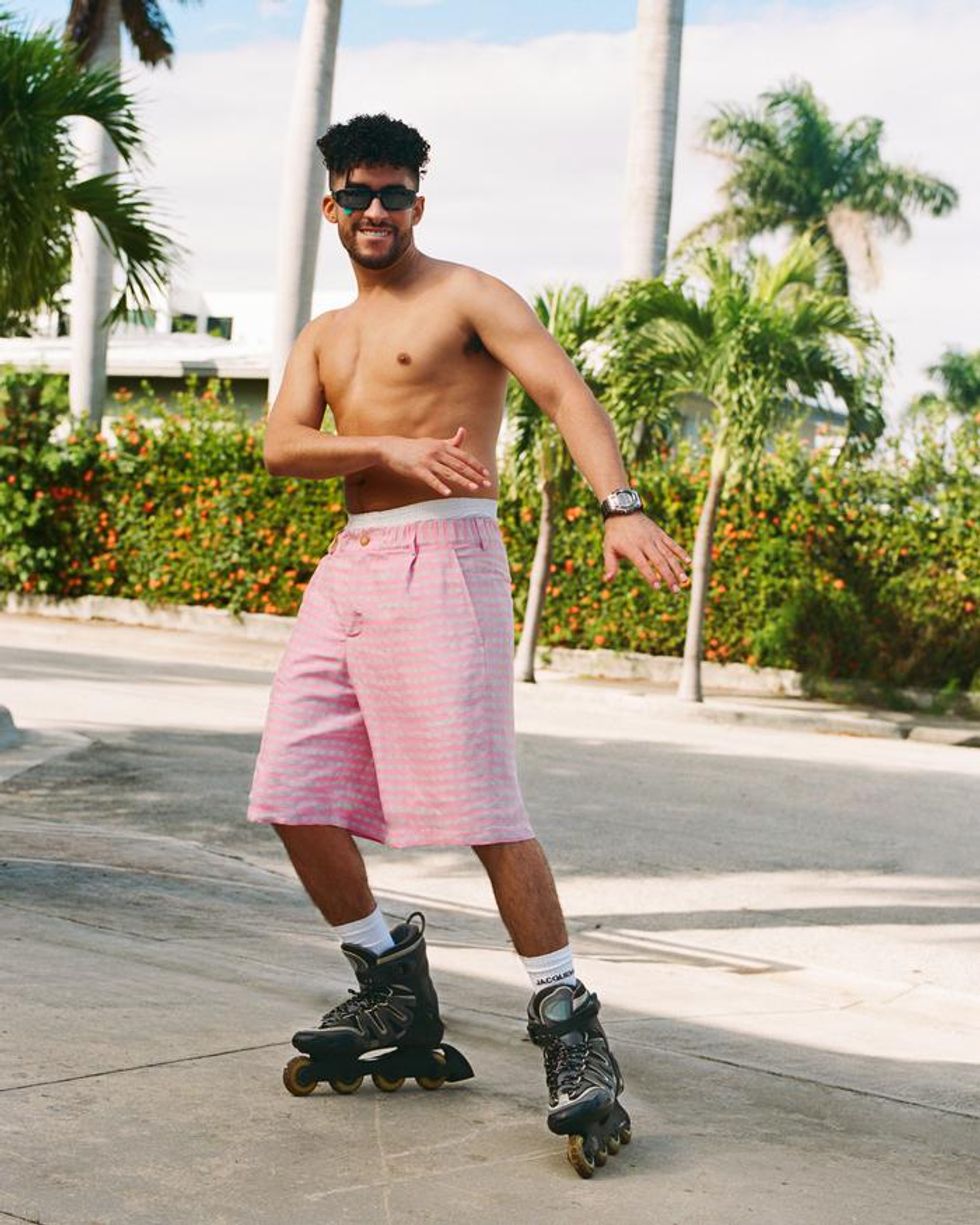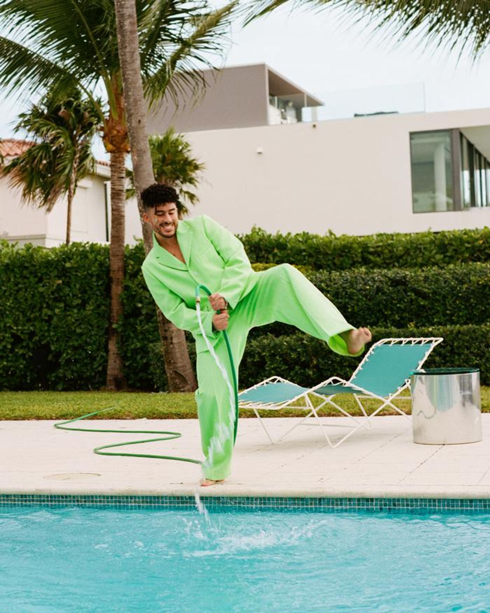 The images released today and lensed by Tom Kneller and Zoey Radford Scott show the Latin superstar wearing heels, neon suits, baggy shorts and heels while frolicking around Miami.