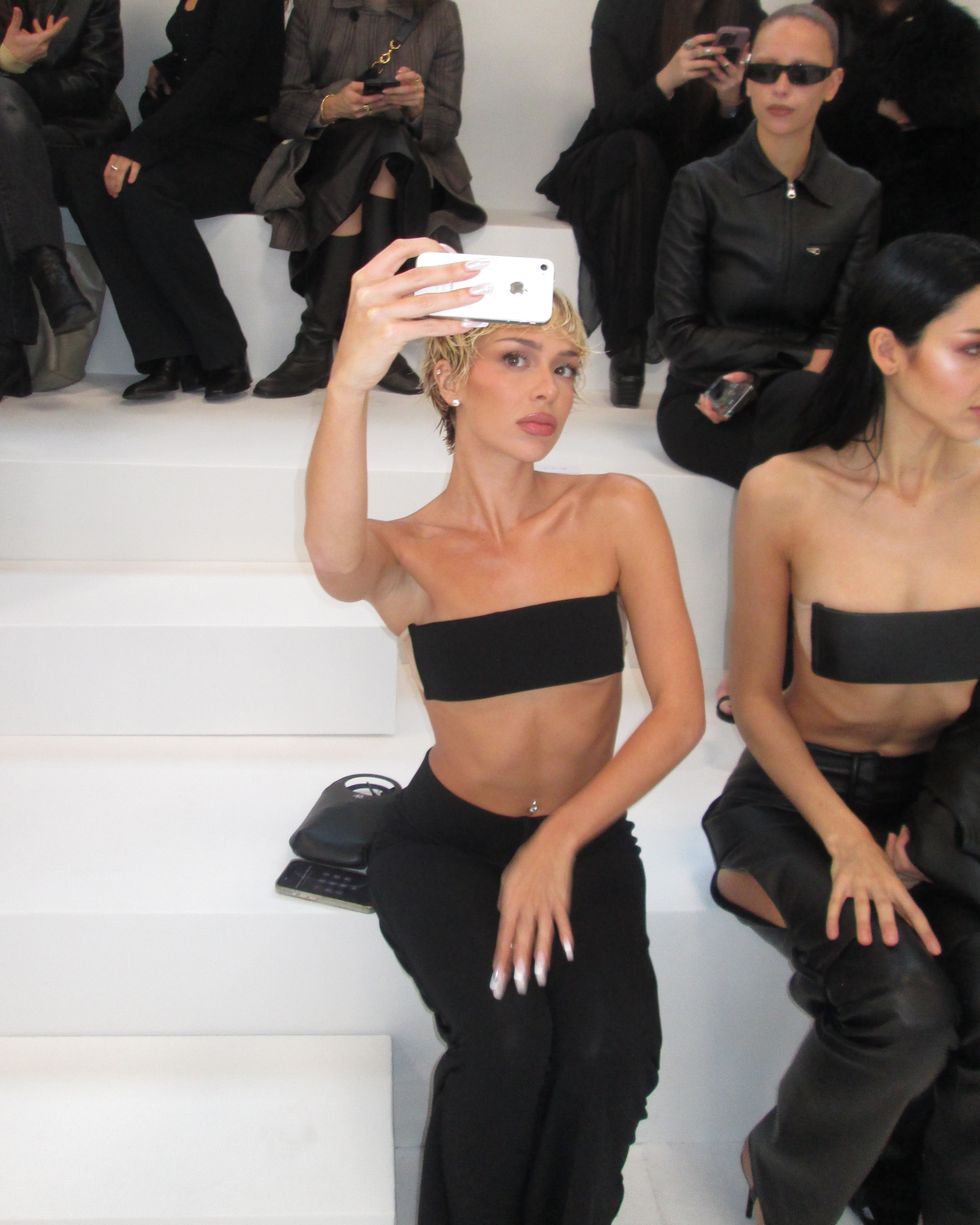 It makes sense, then, that Spanish-Catalan musician Bad Gyal was sitting front row, since people around the world throw it back to her songs. She released her debut album La Joia last year, and most recently dropped a new song, called "Angelito" earlier this year, as she continues to gain momentum in Spain, Latin America and now in the US.