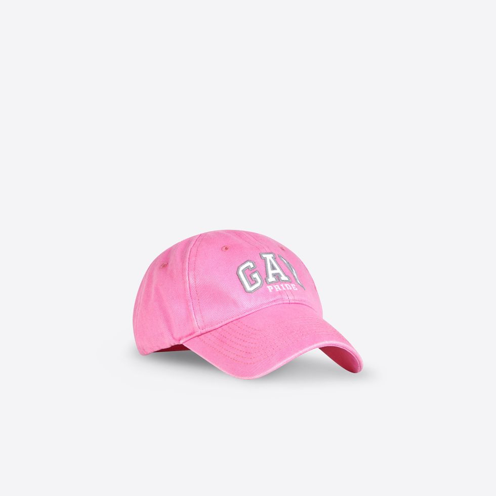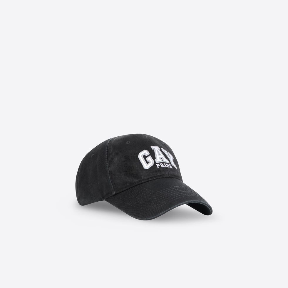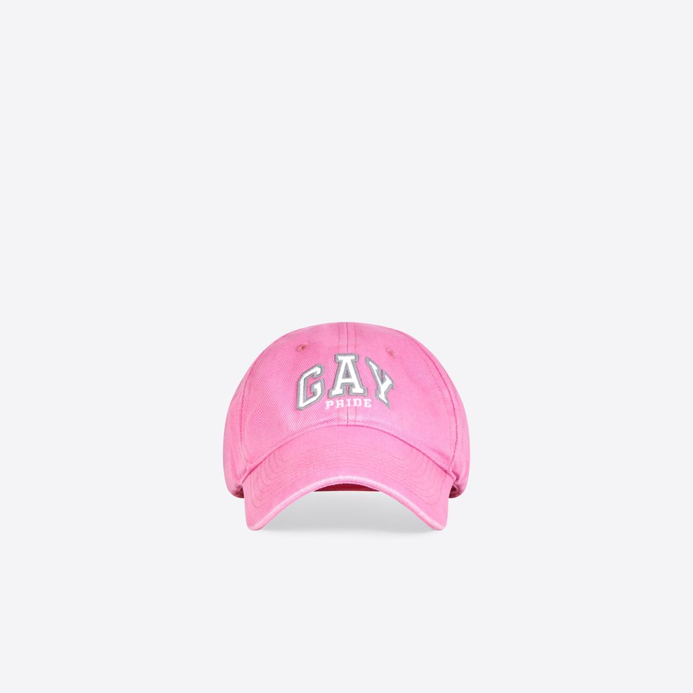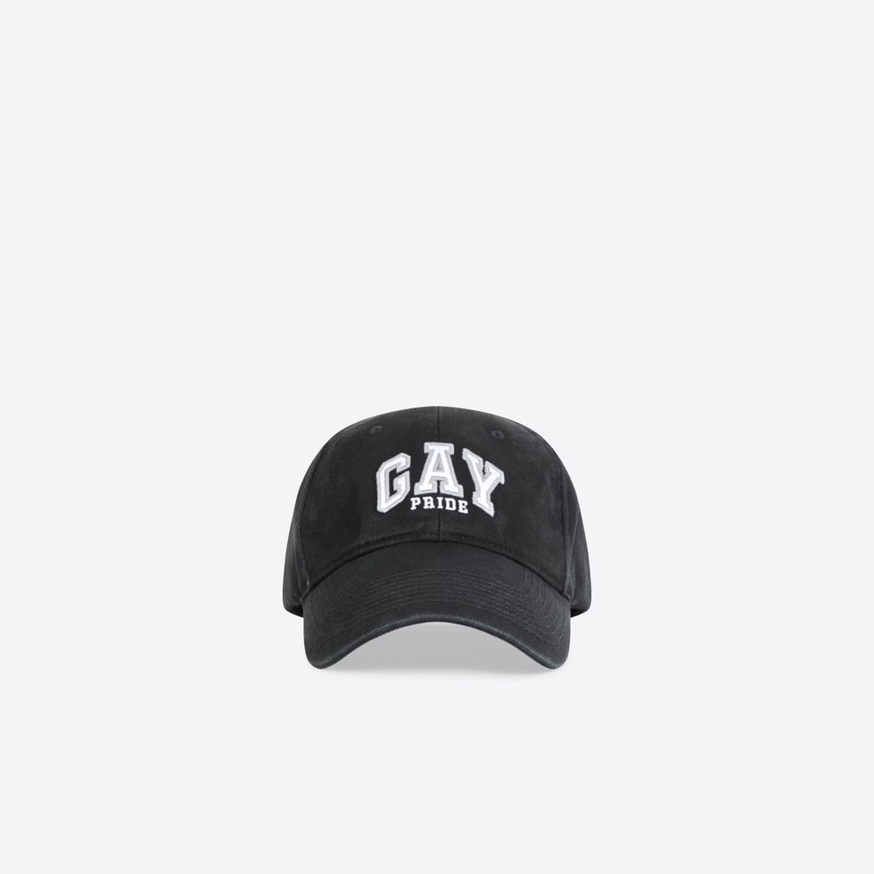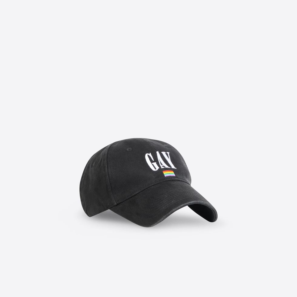 There's also sports bras, baseball caps, boxers, t-shirts and hoodies with "GAY" printed across whose varsity letter font resembles a certain American mall brand. The capsule first debuted last month as part of Balenciaga's Pre-Fall 2021 collection, which saw models standing in front of various famous travel landmarks.