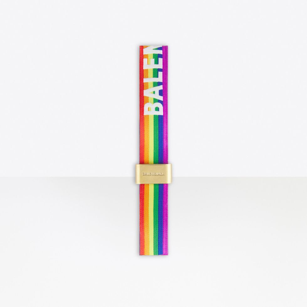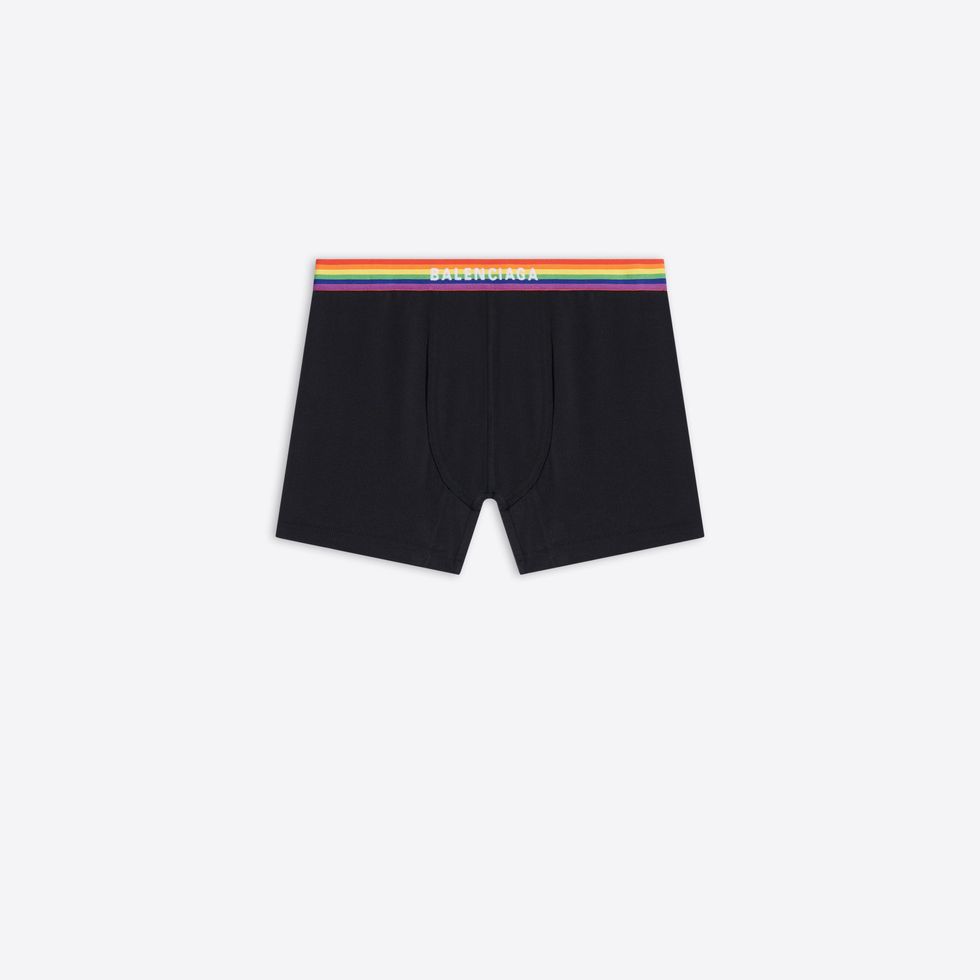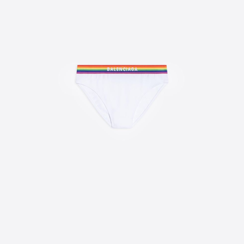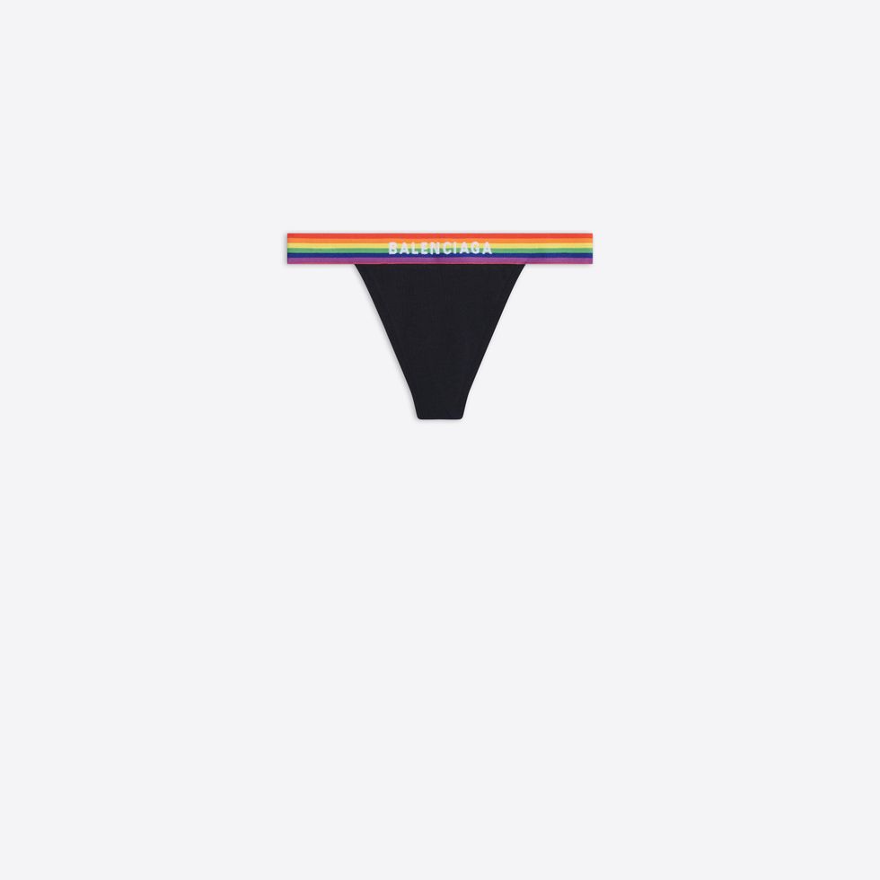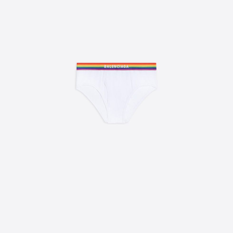 While we suspect the usual underwear-clad party-goers in Calvin Klein trunks, Versace briefs and Parke & Ronen speedos will undoubtedly return, there's now Balenciaga jockstraps entering the mix. Part of the brand's upcoming Pride collection launching in June, the jockstrap features a rainbow waistband with the brand's name emblazoned on the front.