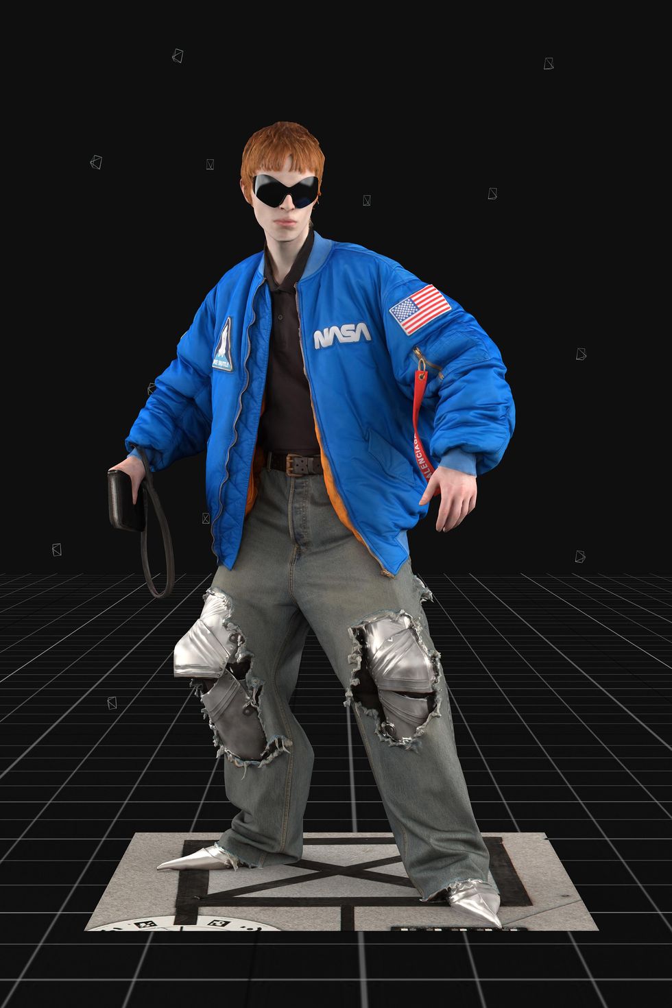 The clothes will feel familiar to Demna fans — puffer jackets, oversized hoodies and logo tees — but with some new details like NASA-branded outerwear, blankets that double as hooded capes and some striking metal armor boots that will no doubt have several waitlists in its future.