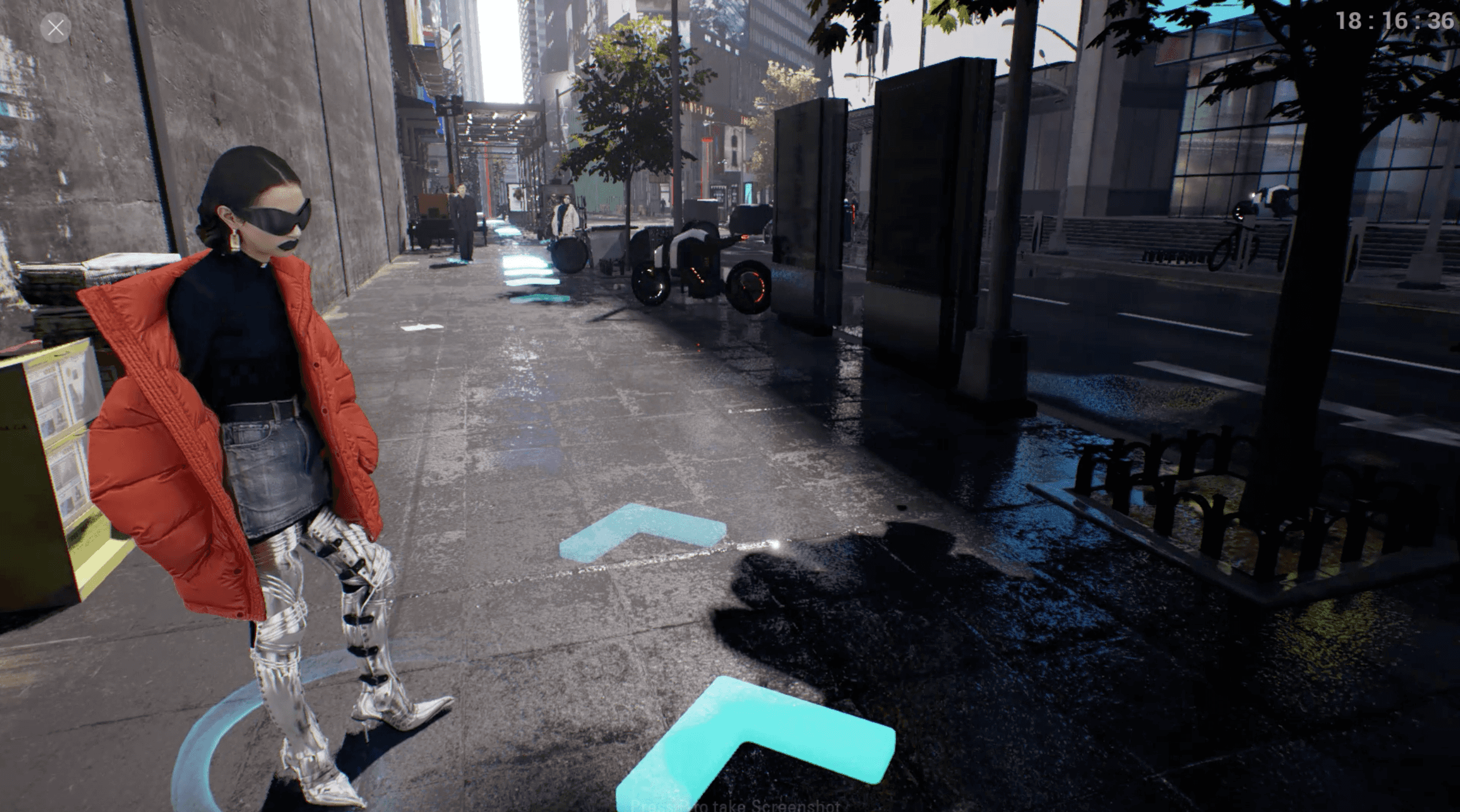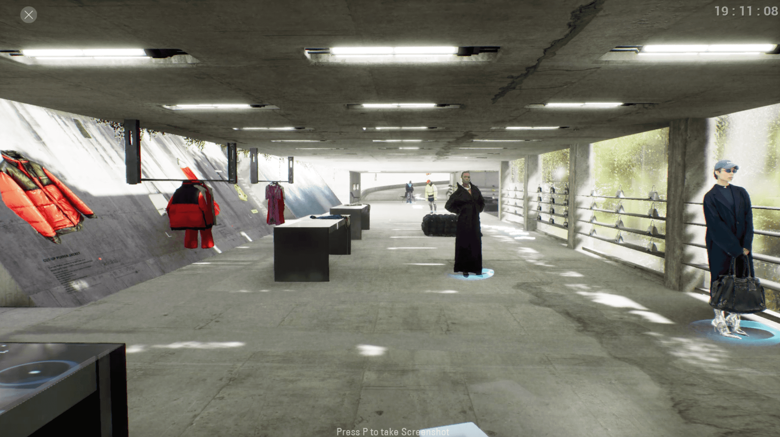 Perhaps the best part of the experience, however, was taking the time to carefully examine the surroundings in each level (I went back and played the game again to get a second look), which offered up clues as to Gvasalia's dystopian commentary and vision of the future — drone honeybees, flying buses and ads for lab-grown food. Billboards promoting energy renewal, water conservation and other eco-friendly practices are also seen throughout.
