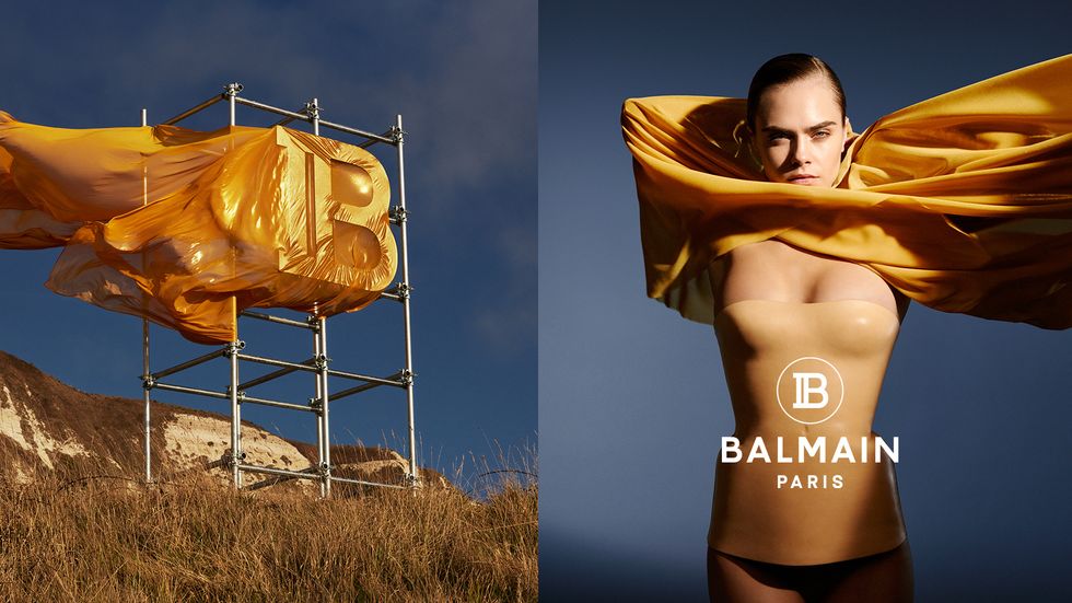 In the gorgeous new clip, Delevingne smolders against the gusts of air and billowing fabric that animate and embrace the brand's new logo mounted in the sky. Signaling the creativity and playfulness of this fresh spirit, the campaign video is the first of a few different ways Rousteing is steering Balmain into the future. "When I went to do couture, people were asking me why I was doing it now and asking why go back to something much older but I think that in order to understand the future, you have to understand the past," Rousteing says.
