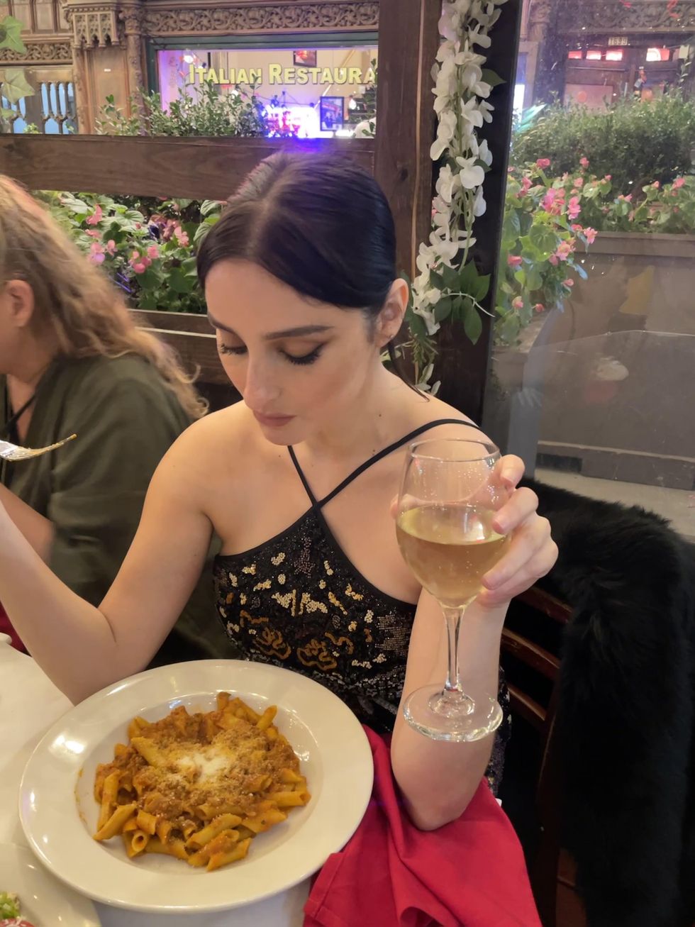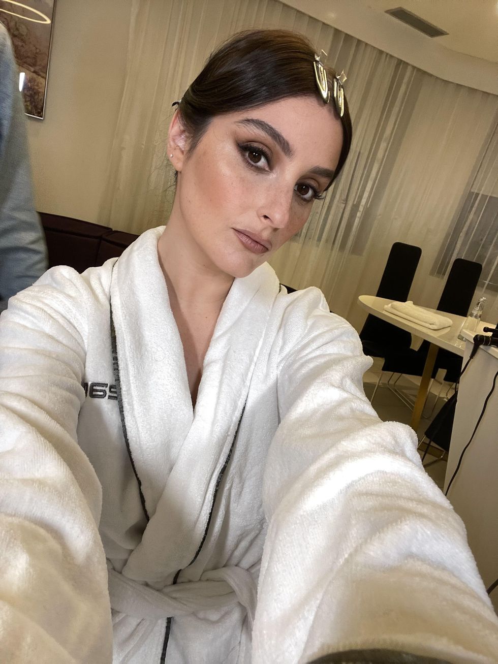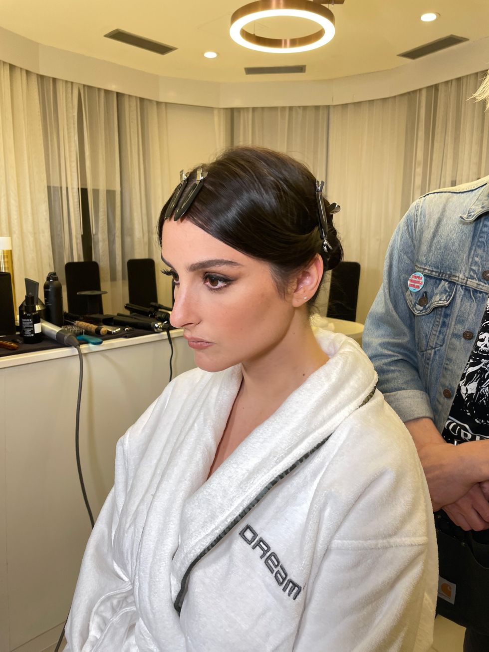 In the hair and makeup chair. I don’t know why I look so serious here. But if you zoom in, that eyeliner is pretty serious.
