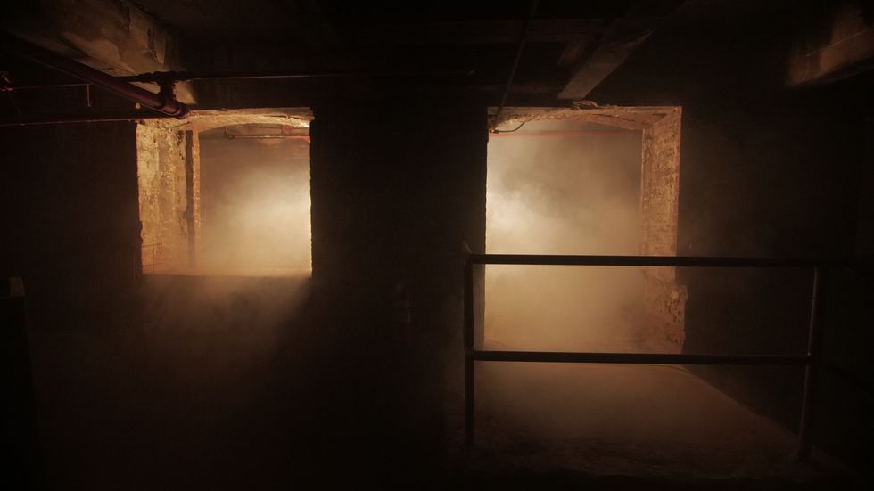 Beckoning for me to follow, Abashidze and Japaridze head into the club's striking entrance — a long, grey concrete tunnel leading to a low-ceilinged, subterranean chamber where workers are busy drilling and pounding all kinds of industrial fixtures together. The floors are covered in dust, the DJ booth has not yet been installed, and there is little to suggest that this bare-boned, 500-capacity room will soon turn into a party paradise. Yet, the potential is obvious: this is one of the most striking spaces I've ever seen for a nightclub. There is a palpable sense of history in these hand-laid brick walls, which date back more than a hundred years to when the building was used as a glass and steel-frame door factory. A labyrinth of shadowy nooks and crannies around every corner — perfect for debaucherous nighttime activities — lend an extra layer of mystery. Even the heavy metal doors look straight out of a Game of Thrones prison.