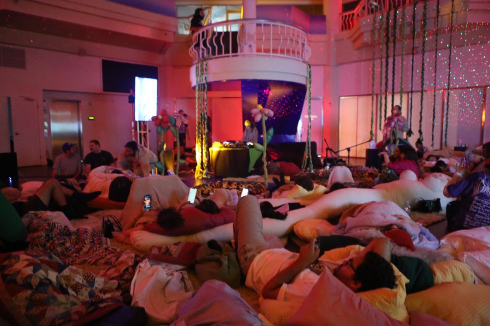 Held on both Saturday and Sunday from midnight to 7 a.m. at the Melin Atrium in Miami Design District, the two-day pop up event was a relaxing interactive oasis filled with with plenty of beds, blankets and pillows, all soundtracked by mesmerizing performances from the likes of Rhye, Scout LaRue Willis and DJ Chantal Jeffries.