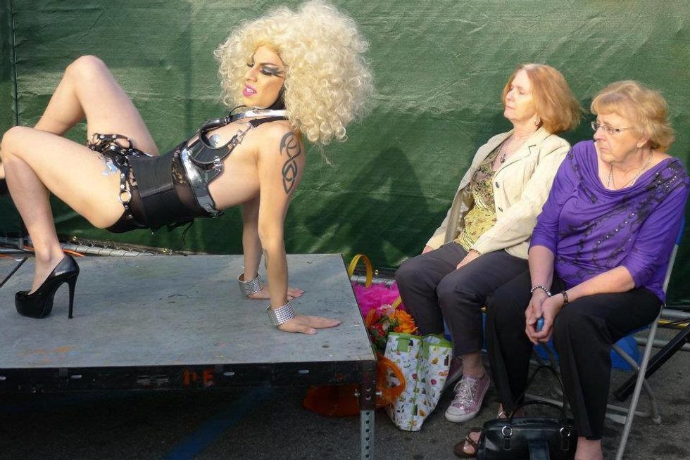 "One of the major draws to Bears in Space and our first party together, Shits & Giggles, has always been the drag shows. We've had an array of performers over the years, but one of the most shocking performances of all time was from Fade-dra Phey, who is notorious for pushing boundaries. We partnered with San Francisco-based drag performance club Trannyshack at S&G for a one-off and she was performing. When it was Fade-dra's time to perform her track, which featured a female rap vocal chorus of, 'I be shittin' on you hoes...,' she midway reaches into a diaper she was wearing that she had strategically filled with several ounces of chocolate pudding, knocks down a rival drag performer and flings the chocolate pudding onto them. I have yet to witness a more horrified audience than ours that night. Several hundred queens shrieked in absolute terror as the pudding splashed a good portion of the crowd." -Chris