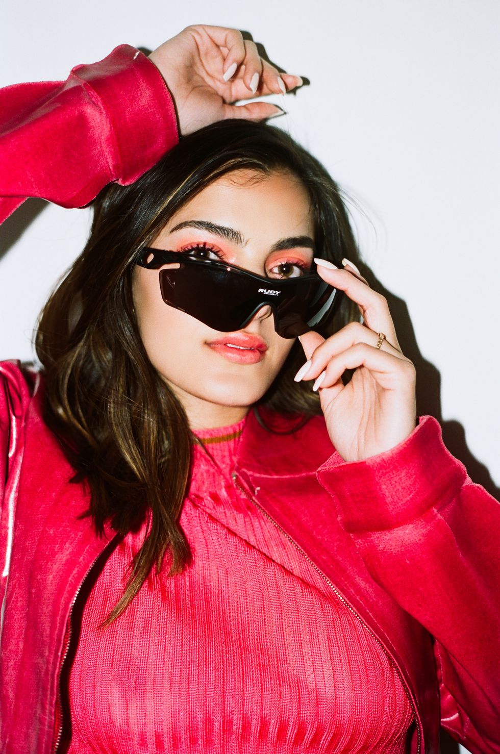 Top and Jacket by Acne, Sunglasses by Fenty Puma