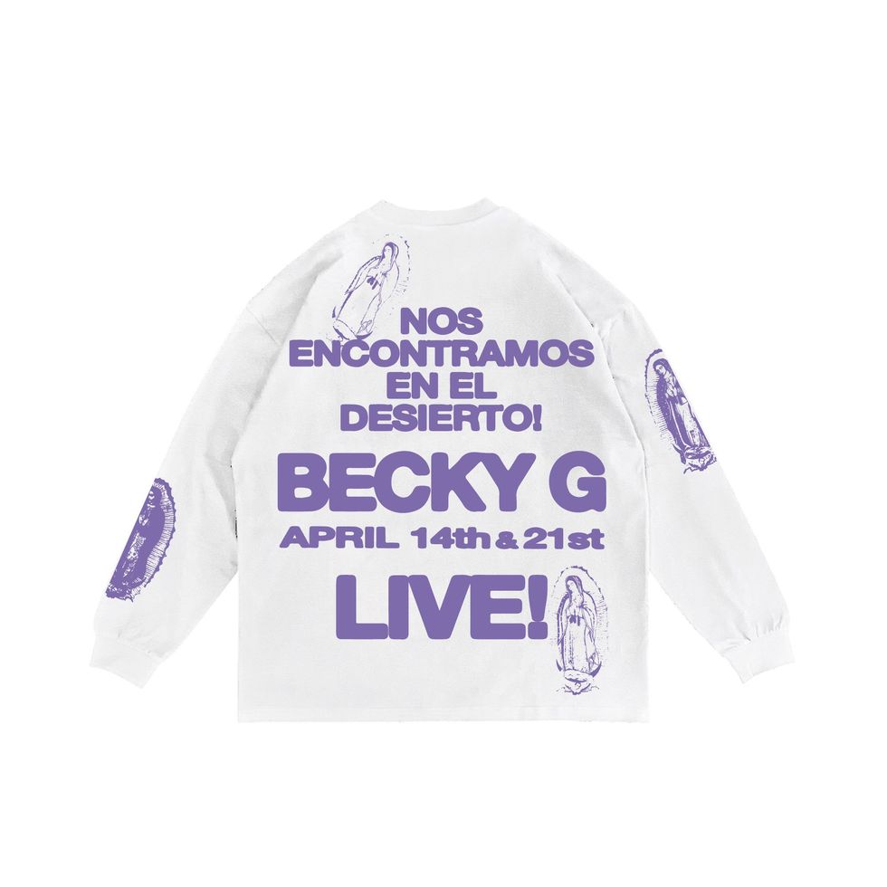 In an exclusive first look with PAPER, multi-hyphenate superstar Becky G offers a first look at the two pieces available to purchase this weekend and next. There's an insanely cozy-looking oversized crewneck with a purple print, perfect for a chilly desert breeze or a lazy day moment with leggings.