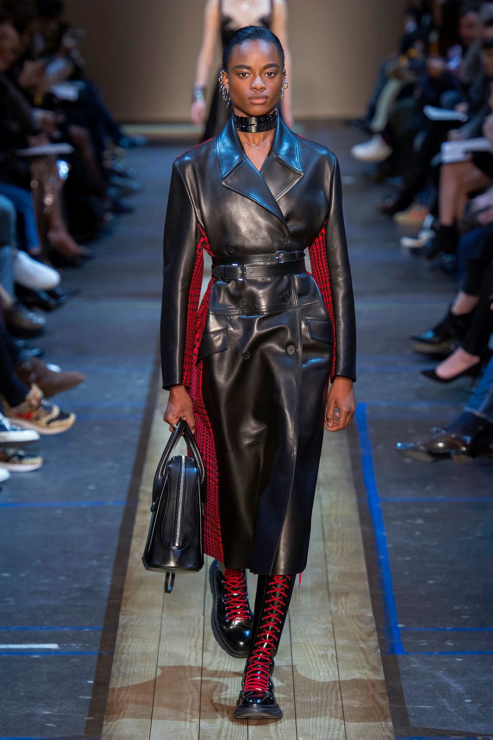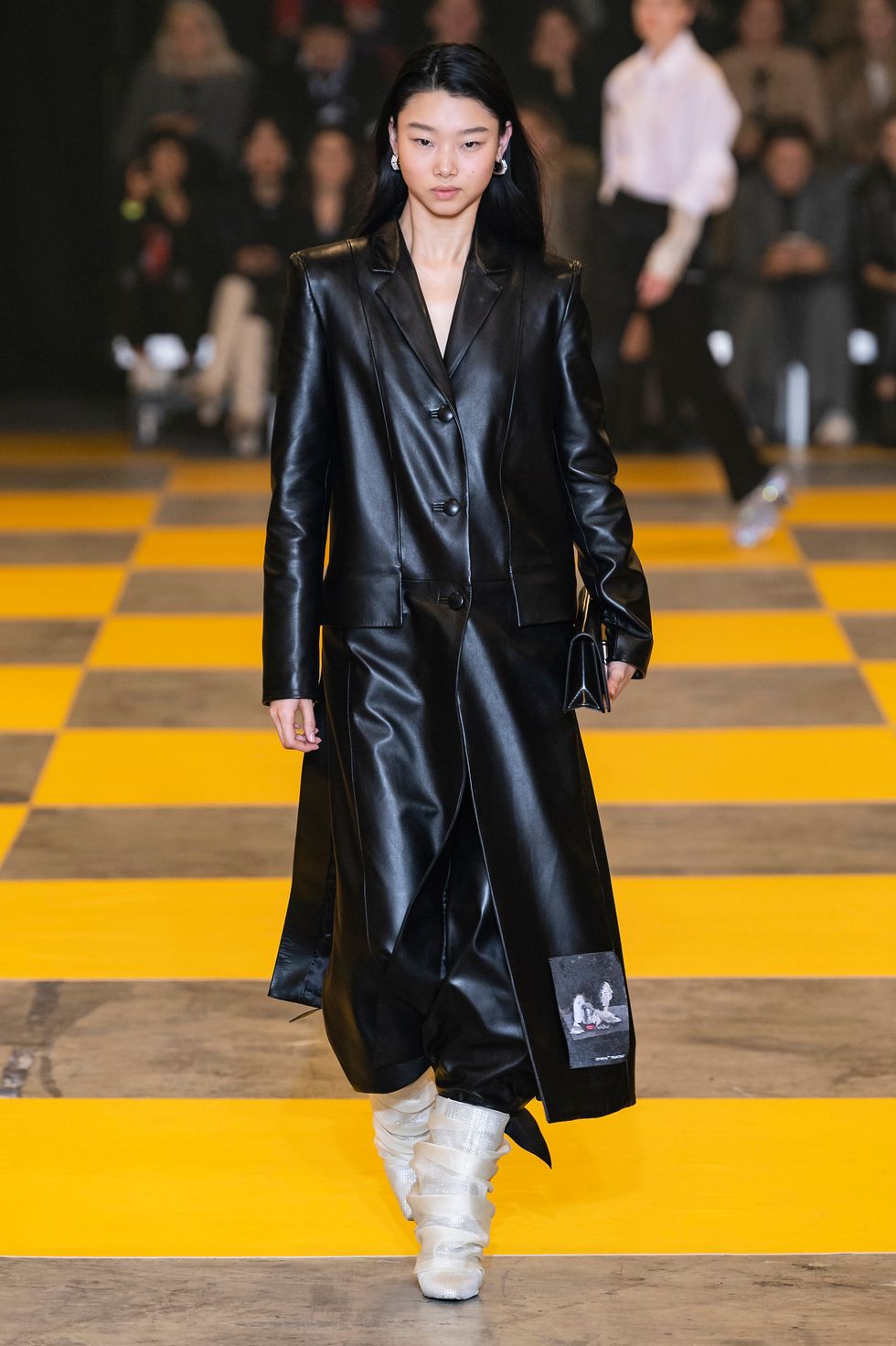 Long leather trenches and blazers were all over the runways this season: they were prominently featured at Balenciaga, Alexander McQueen, Off-White, Rokh, and many, many more.