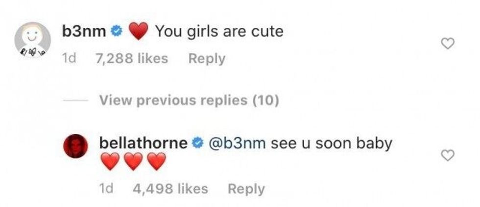 And it appears as if Thorne's boyfriend, Benjamin Mascolo, is also happy that she's in love, commenting, "You girls are cute."