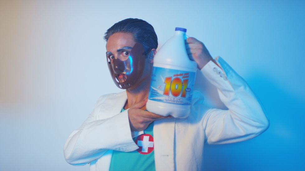 Pairing high with low-end garments and accessories, from the cheesiest of burger costumes to the sleekest of Versace trench coats, Skinner has curated your entire night's look. So don't show up in last year's lazy vampire costume, because your friends may not peg your look as recycled at first, but their Timehop never forgets — Geminis, we're looking at you.