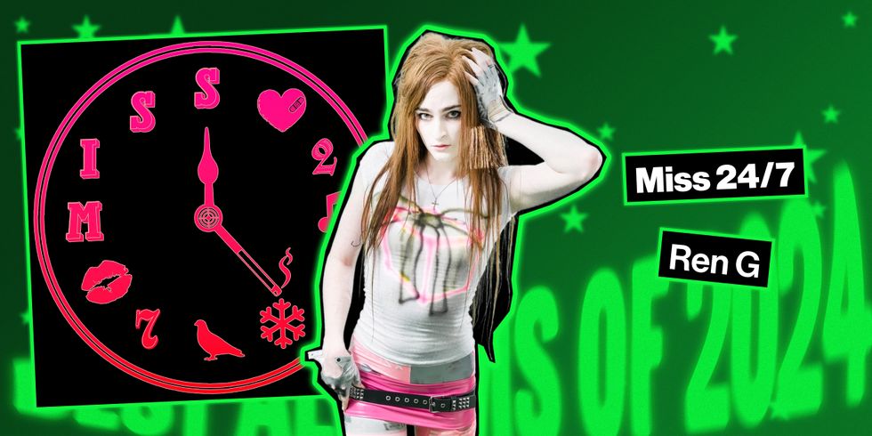 On "Bangs," Ren G introduces herself: "This is Miss 24/7," she mutters before delivering a banger that could very well fit within the realm of the sonic universe she cultivated through New York Downtown mainstay Club Eat. When she and producer Chicken announced that Club Eat would be disbanding earlier this year, it felt like the end of an era. Even still, there was an excitement in the ephemerality of it all, and not long after, Ren G came back in full force. Her debut solo album, Miss 24/7, is a manifesto, with Chicken still showing up as a producer on many of the tracks. But she also expanded her horizons with sounds and musings that gave us a bubblegum-filled peek into the girl behind the club queen. If Ren's Club Eat era was like Lady Gaga hustling the streets as a DIY performer on Rivington Street, then Miss 24/7 is Ren G's The Fame.