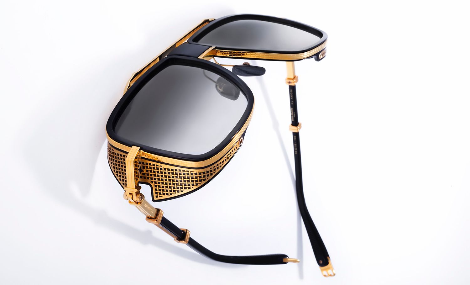 Developed by Lugano-based eyewear company Akoni, Balmain's latest sunglasses collection calls on the legacy of the Parisian fashion house, referencing Pierre Balmain's signature medallions with tasteful gold touches. The label welcomes five new styles — the thick-framed B-I model, the contemporary and feminine B-II style, the "less-is-more" 1914 frames, the steampunk-esque O.R. design and the dramatically oversized Wonder Boy sunglasses — but there's one iteration that creative director Olivier Rousteing claims as his favorite.