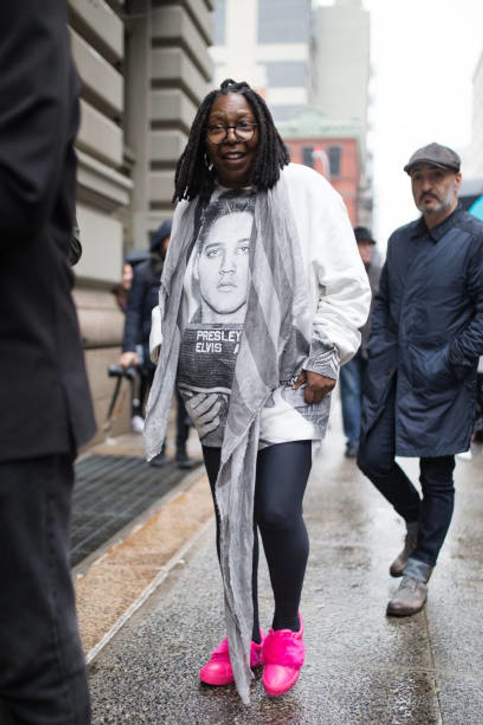 Whoopi Goldberg goes to every New York Fashion Week event ever, sits front row, and in a sea of poseurs always looks exactly like herself. A sometimes-forgotten fashion icon who has long supported designers big and small, she's worn Vetements on The View and walked for Opening Ceremony. She likes Thom Browne for the red carpet. She has thoughts on Eckhaus Latta.