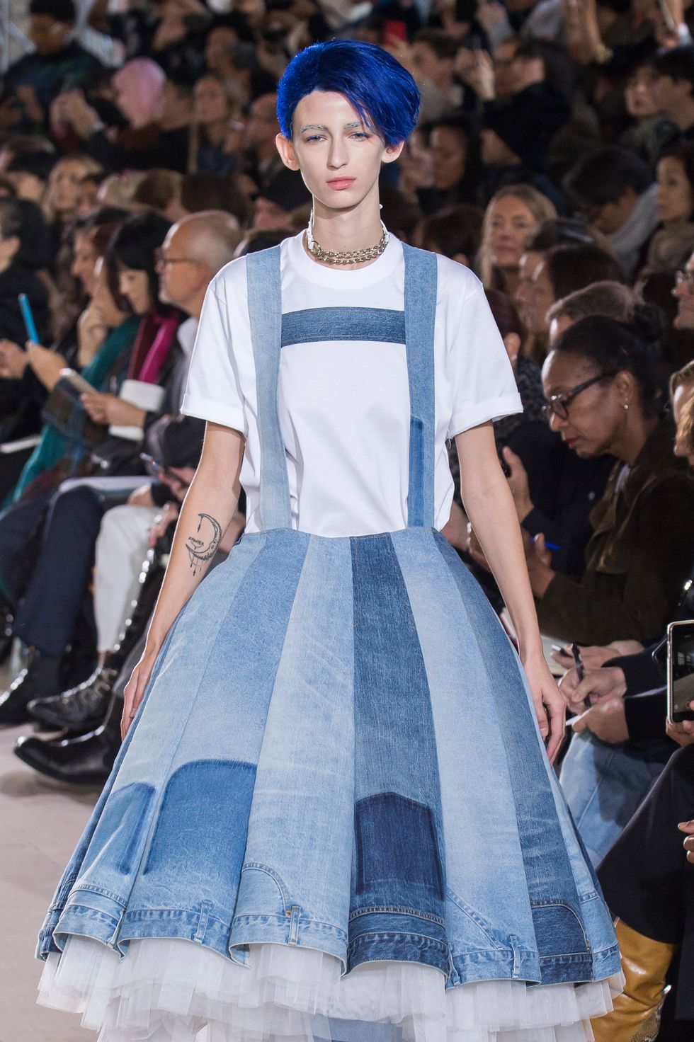 London-based hair stylist Kiyoko Odo reated little blue and green wigs trimmed to different lengths for Junya Watanabe's show. Capturing the punk sensibilities he's championed since establishing his brand in 1993, the toupees are a haphazardly cut version of the subculture's bright hairstyles.