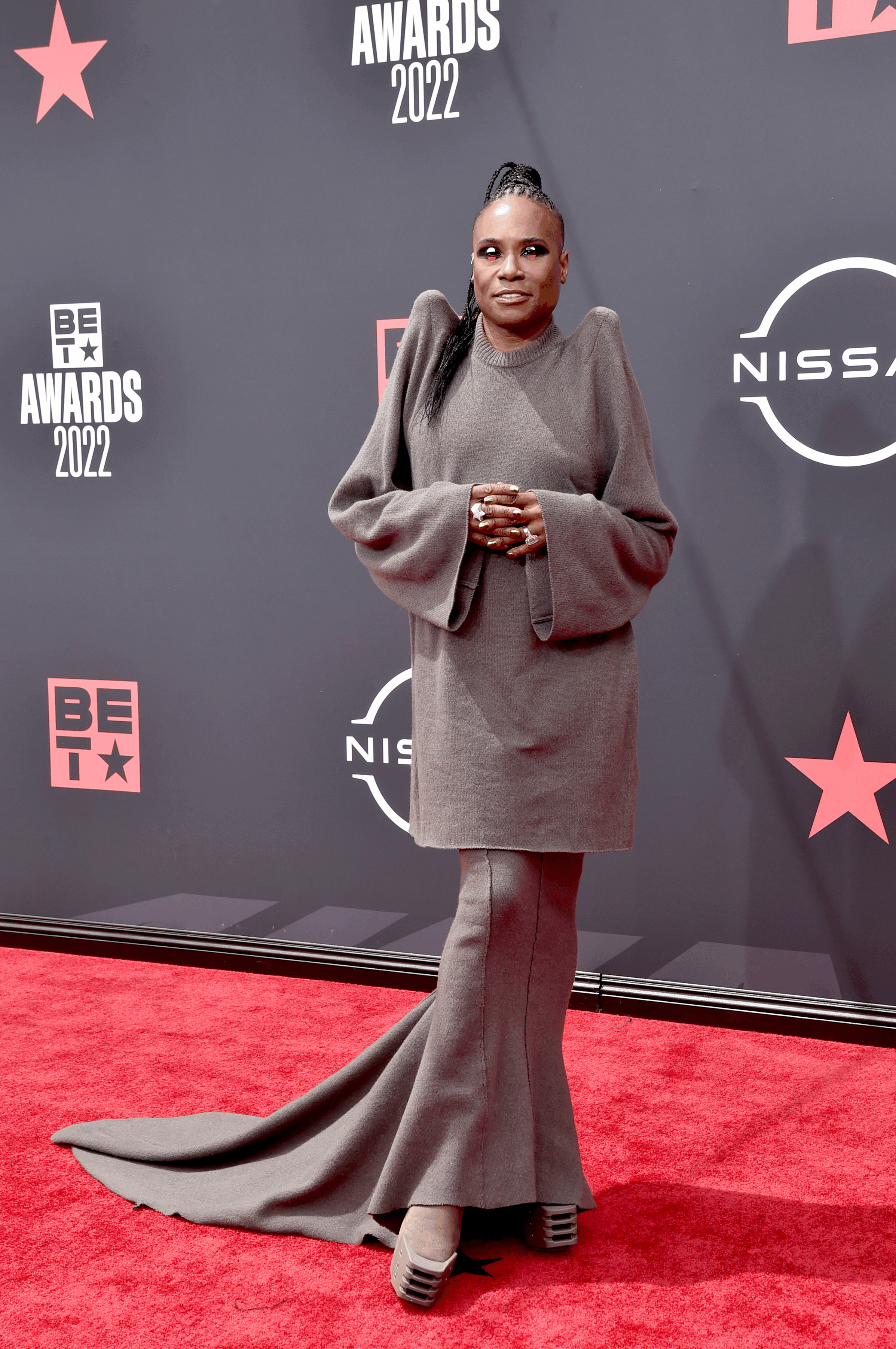 From the red carpet to the stage, this year's BET Awards had plenty of fashion moments to consider, from 2022's breakout star Saucy Santana in custom Area to style risk-taker Billy Porter in a gothic Rick Owens situation. Lil Nas X, always a high-fashion treat, sadly was snubbed and did not attend, but Jack Harlow's t-shirt thankfully kept his spirit alive. Other standouts included Brandy performing in Glenn Martens' Diesel and Lizzo rocking a custom Gucci ensemble. See below for all of the outfits celebs wore at the 2022 BET Awards.