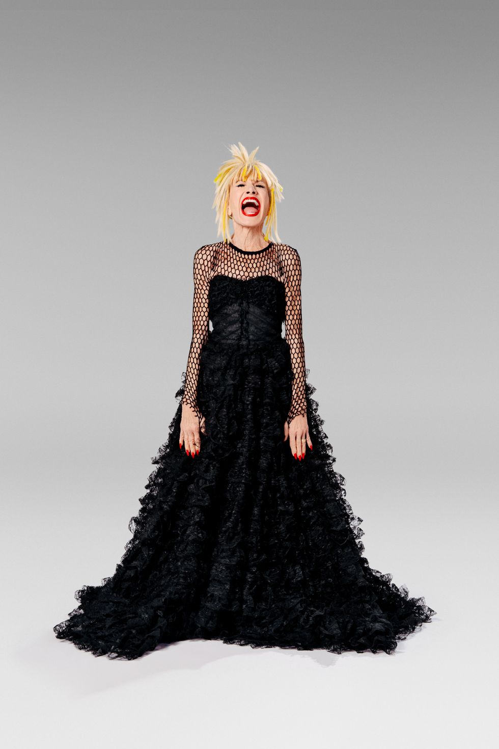 Johnson, like many of her dedicated fans, had always been a dreamer, someone who walked to the beat of their own peppy drum. She grew up in quiet Westfield, Connecticut. “I remember it as farmlands,” she says. “It was cornball, but warm and wonderful and neighborly and gardens and sharing. All that really old-fashioned stuff.” As a child, her mother sewed about half of her wardrobe, noting, “We didn’t go into Hartford to go buy clothes.” Her mother also made her dance clothes, quite intricately by layering on the tulle and sequins, which Johnson says “will always be my biggest inspiration, along with Old Hollywood movies.” Johnson, an avid dancer, began dancing at four and five, taking lessons about four or five times a week, which became a full-fledged apex of fantasy for a young Johnson. “It consumed 95% of my body and 95% of my head,” she says. Dreaming started with dance, namely her teacher who was a Broadway dancer: “a total fantasy lady.” The recitals and costumes typically were food-oriented themes. “I have strawberry shortcake, Neapolitan and vanilla-chocolate costumes,” says Johnson of her still-saved costumes. Later for her own runway shows, themes would be explosive, alluring and a party in their own right.
