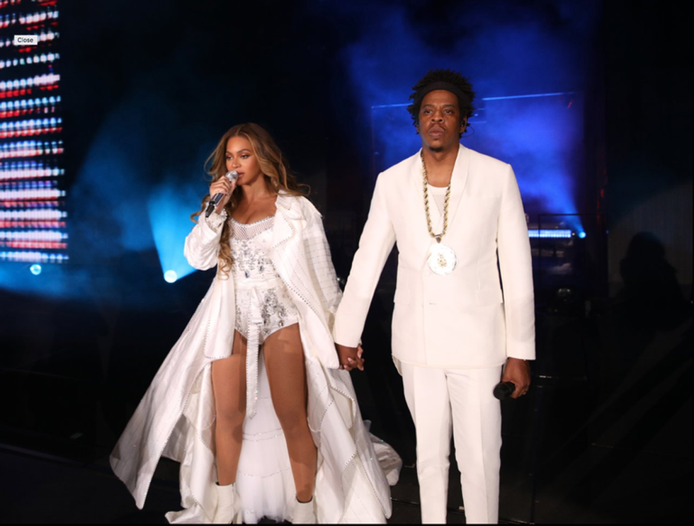 We have already seen Tisci's new allover "B" printed logo (perfect synergy when Queen Bey is brought into the picture, don't you think). And Bey has also been the first star to appear in a customized Burberry look by the Italian designer during an On The Run II Tour performance last month.