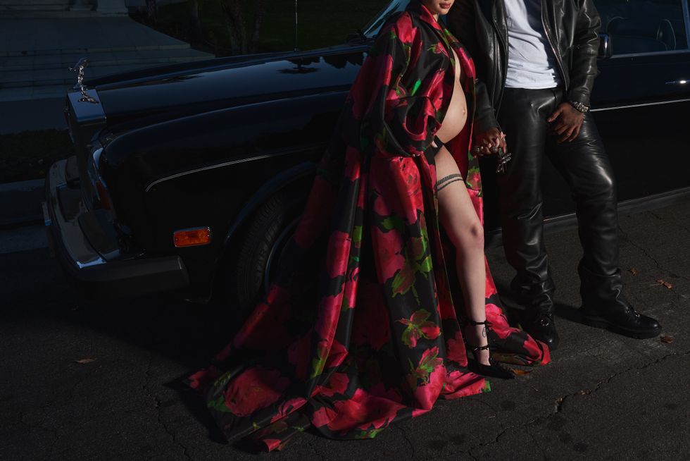 (On Le Vaughn) Pants: EZR, Boots: Neil Barrett, Jacket: Chrome Hearts (On Danielle) Coat: Richard Quinn, Shoes: Balenciaga