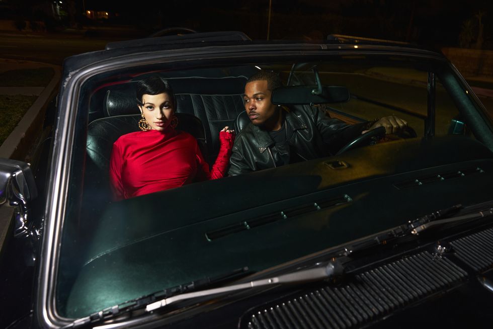 (On Le Vaughn) Top: Delos, Pants: Marine Serre, Boots; Chrome Hearts (On Danielle) Dress and shoes: Gucci