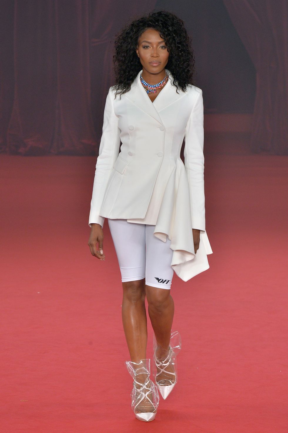 At the spring 2018 Off-White show, designer Virgil Abloh showed his final look on Naomi Campbell, white bike shorts with a matching tailored blazer. The collection was directly inspired by Princess Diana — Campbell's outfit referenced images of the late Princess of Wales leaving the gym. The same pictures have since become a touchstone for street style enthusiasts and hypebeasts alike. "[Diana] was a strong individual that despite her position had her own personal taste and it came out through the clothes," Abloh told Vogue. "There is no stylist at play here."