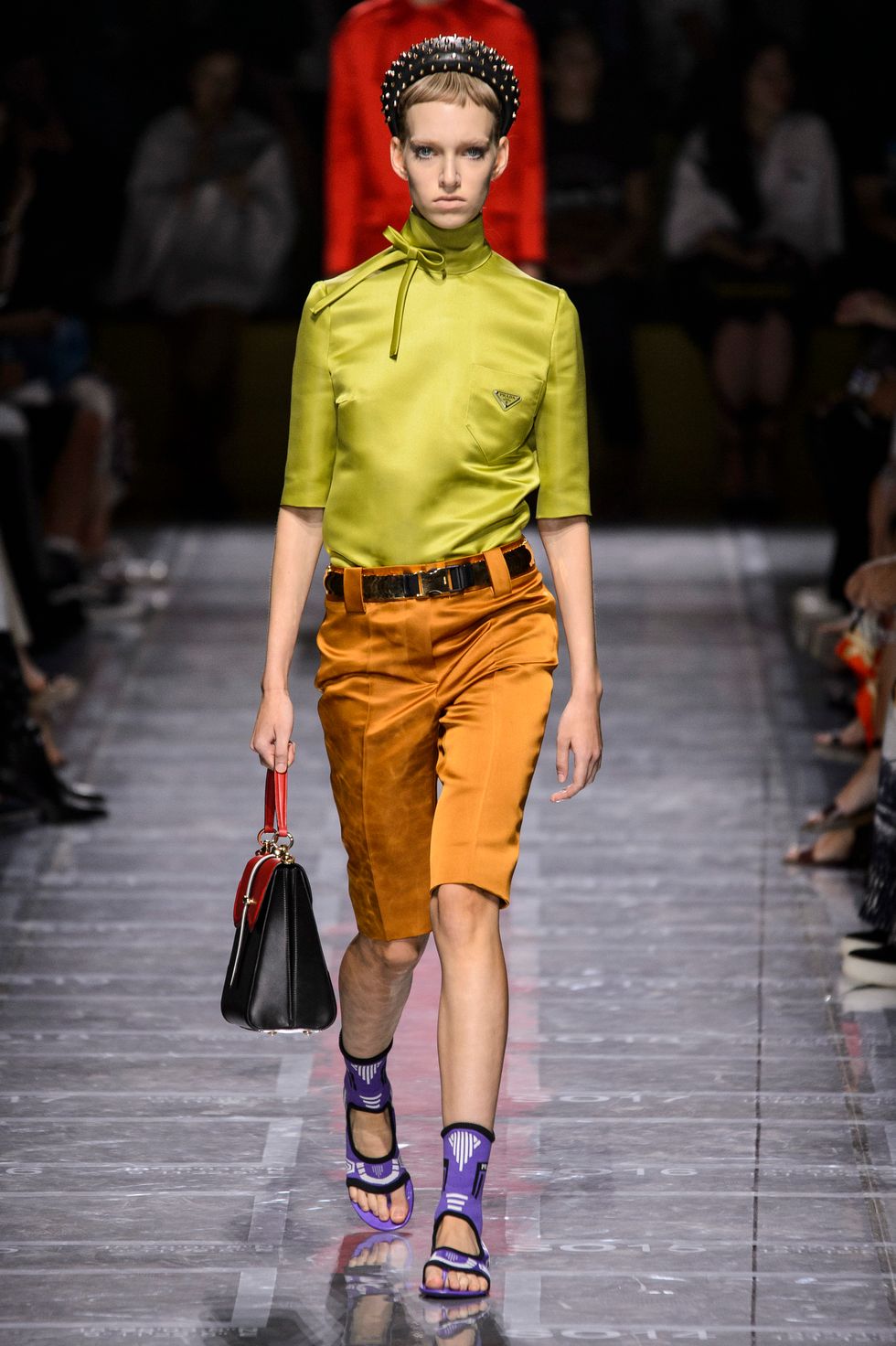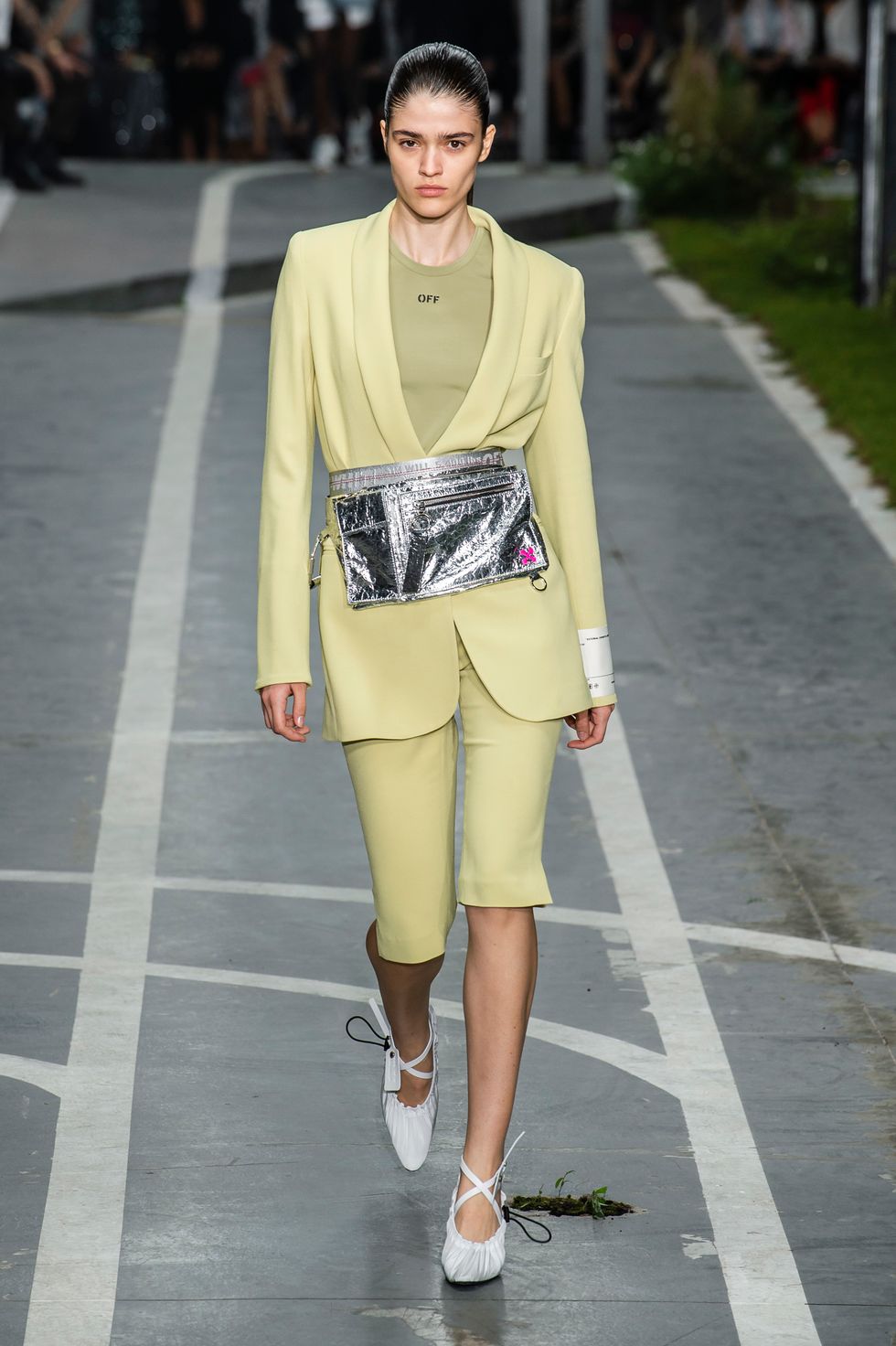 Though bike shorts have been a highly visible trend for some time now, for spring 2019 designers dug in. They were everywhere. Certain brands align with the overall bike short aesthetic ('90s nostalgia mixed with gleaming futurism, á la The Matrix, an overused reference that will haunt us until the end of time). It wasn't a surprise to see them pop up again at Off-White. Marine Serre, who describes her (gorgeous) work as "futurewear," showed a white pair with a green swirl, matching a top with her signature half-moon logo. Prada, which mixed a 1960s-style femininity with athletic references, showed silk bermuda shorts that were cut so close to the body that they echoed cycling styles.