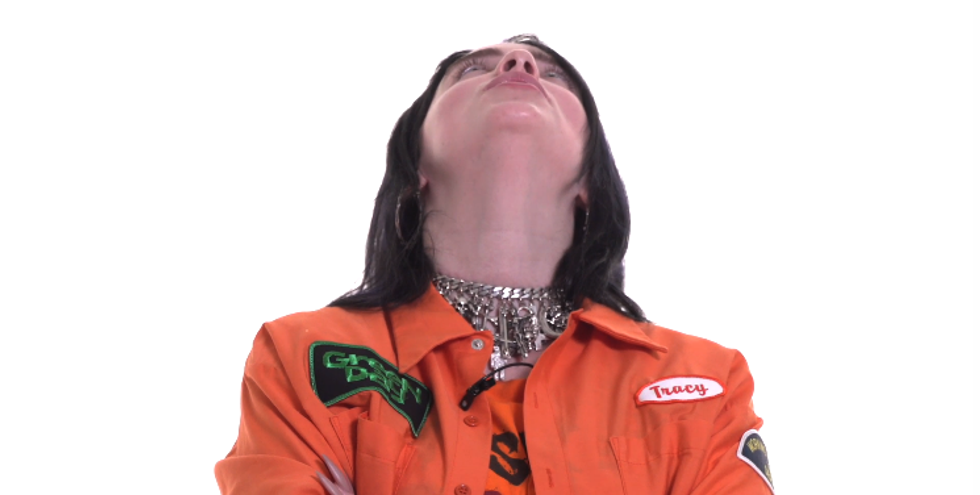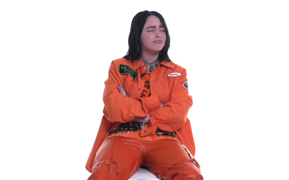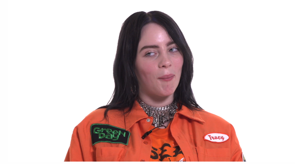 Billie Eilish gives great interviews. She talks like she's vomiting out the absolute first thing/word/image that pops into her neon-technicolor head. Sometimes that thing is utter nonsense, but it's also a level of honesty most artists lack. She speaks strictly in a woozy Gen Z dialect ("dude," "deadass" and "shit" follow most phrases). Her enormous eyes are nearly as expressive as Meryl Streep's. And generally, she is very strange. Plus, she's okay with and even thrilled about grossing or freaking out her interviewer.