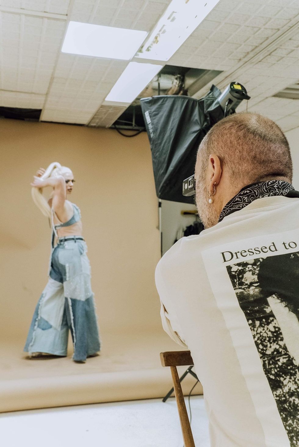 The result is a campy fashion film — directed and shot by Daniel Groundland — that features another dancer named Celeesi and a clubby soundtrack by DJ Jodie Harsh. Both Bimini and Celeesi wear Joel's over-the-top looks, which the independent designer describe as "androgynous" with elements of "womenswear and menswear," and queer references to pop culture.