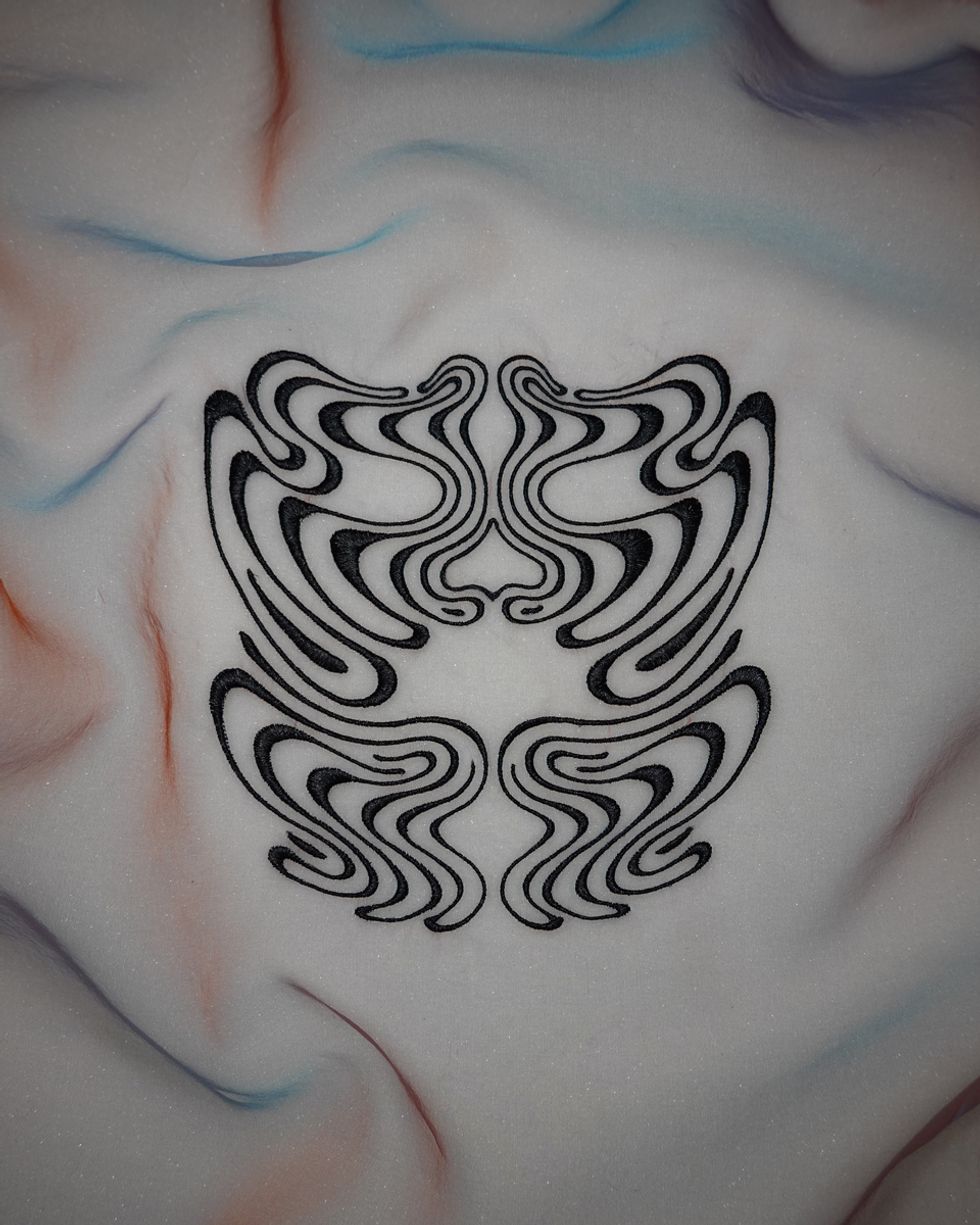 While sometimes visible through certain skin conditions, these otherwise unseen markings can cover the human body, and are originally detailed in Blaschko’s 1901 paper on the subject, published in German. “My German isn't great so it took a bit of searching, but luckily it was all digitized and easily accessible on the Internet Archive,” Merry tells PAPER. As for what he found there: “His diagrams are so beautiful and detailed. I studied them really closely to get a general sense of how the lines are placed around the body and what sort of contours they follow, before I started any sketching.”