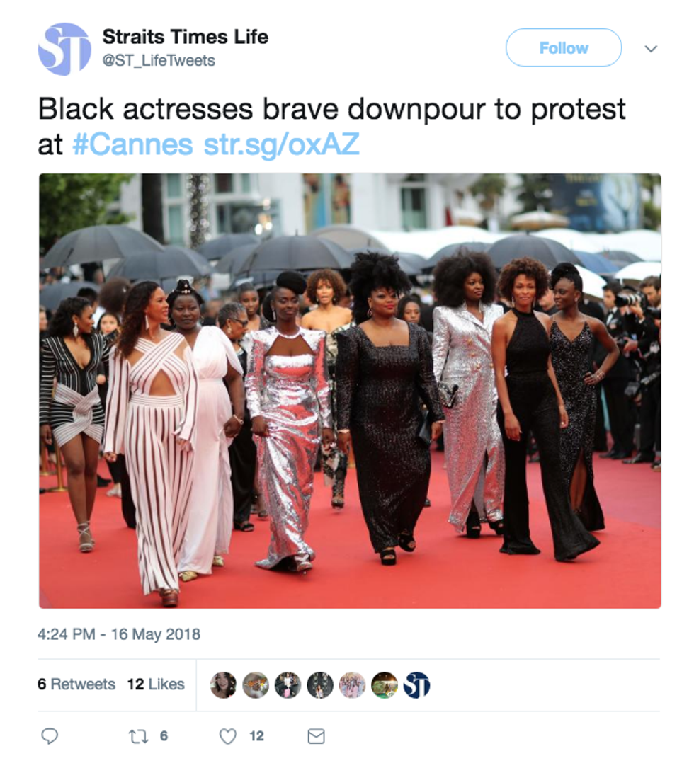 In a sea of black umbrellas, Balmain-dressed Black actresses banded together to walk the carpet in the pouring rain, before congregating on the famous steps. All 16 actresses were demonstrating against the consistent racism plaguing the French film industry. They claim directors and casting agents inform Black actresses cannot portray educated professional characters like lawyers. They are also reportedly oft asked if they speak "African."