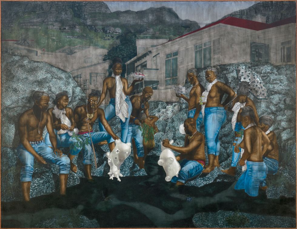 "Dance on Ancestral Ash 1" (2019), acrylic and collage on canvas. Photo by Michael Hall and courtesy of the Everard Read Gallery