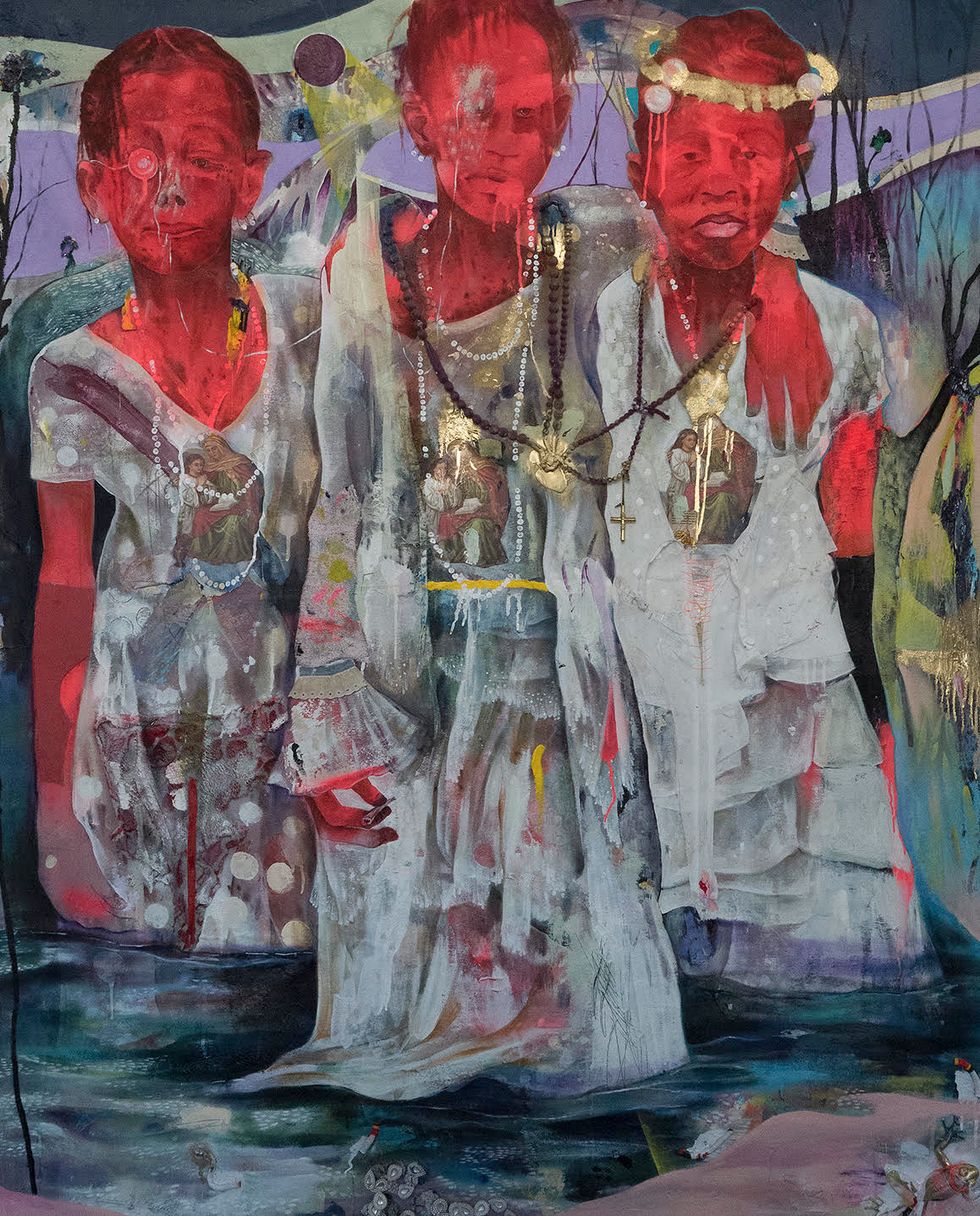 Lavar Munroe's "Church in the Wild" is from his series "Redbones," which illustrates that when our skin is removed, we are all the same underneath. The 37-year-old's art is influenced by his homeland of the Bahamas, where he had a 10-year retrospective at the National Gallery. Munroe has shown at the Venice Biennale and his work currently hangs at the Perez Museum in Miami.