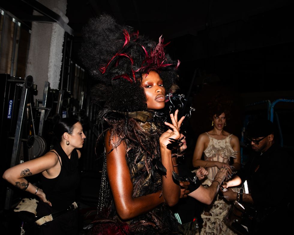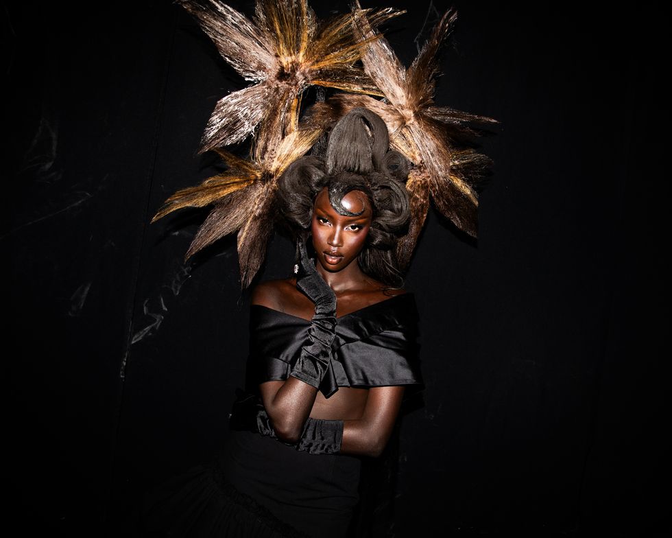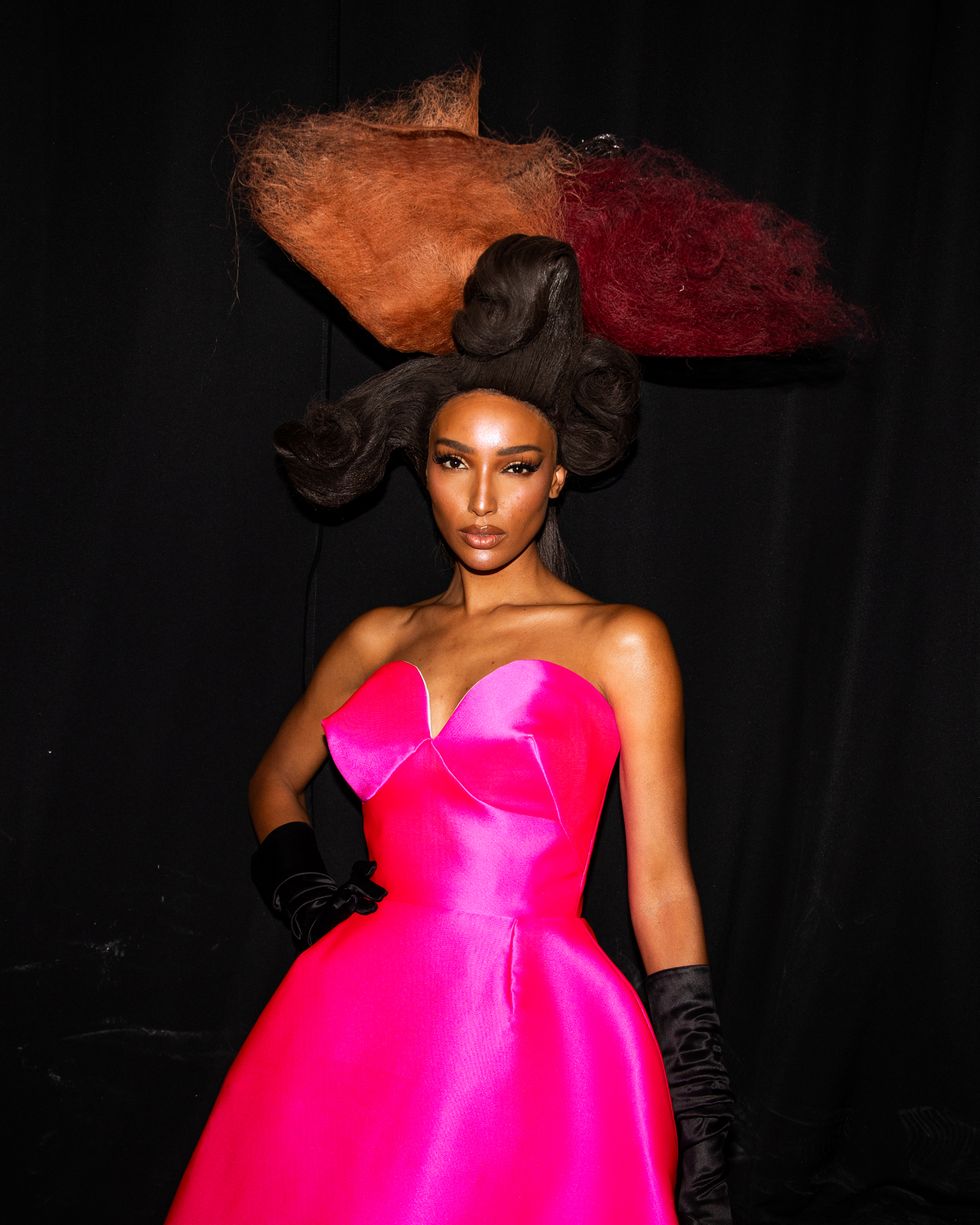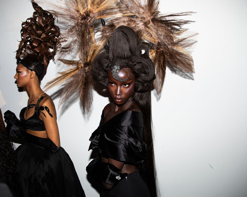 Set against New York City’s skyline, the show combined editorial fantasy with deep cultural reverence. The 25-look runway show was presented in five acts, showcasing the works of legendary hairstylists Jawara Wauchope, Yusef Williams, Vernon François, Cyndia Harvey and Malcolm Marquez, who each respectively worked in tandem with wardrobe stylists Carlos Nazario, Patti Wilson, Jan-Michael Quammie, Gabriella Karefa-Johnson and Jessica Willis. Together, they created a visual experience where hair and fashion moved as one. Makeup artists Sir John and Sheika Daley created bold, skin-forward looks, while nail artist Dawn Sterling delivered reimagined nail designs that were simply out of this world.