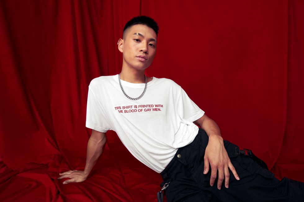 The shirts are made using blood donated by gay male employees at Mother New York and are intended to draw attention to the fact that queer men are prohibited from donating blood purely because of stigma associated with queerness. All blood that is donated is screened, and prohibiting any one group of people from donating based on their sexual identity is discrimination. Reuters reports that if the ban was lifted, blood donations could increase by 615,300 pints a year, which is enough to save as many as 1.8 million people's lives.