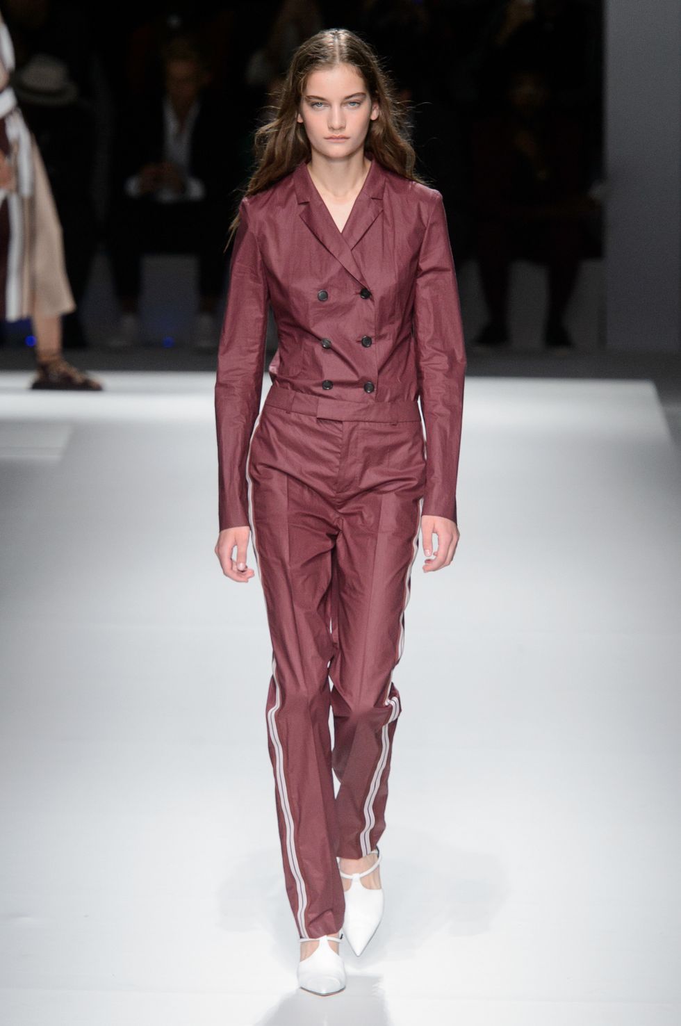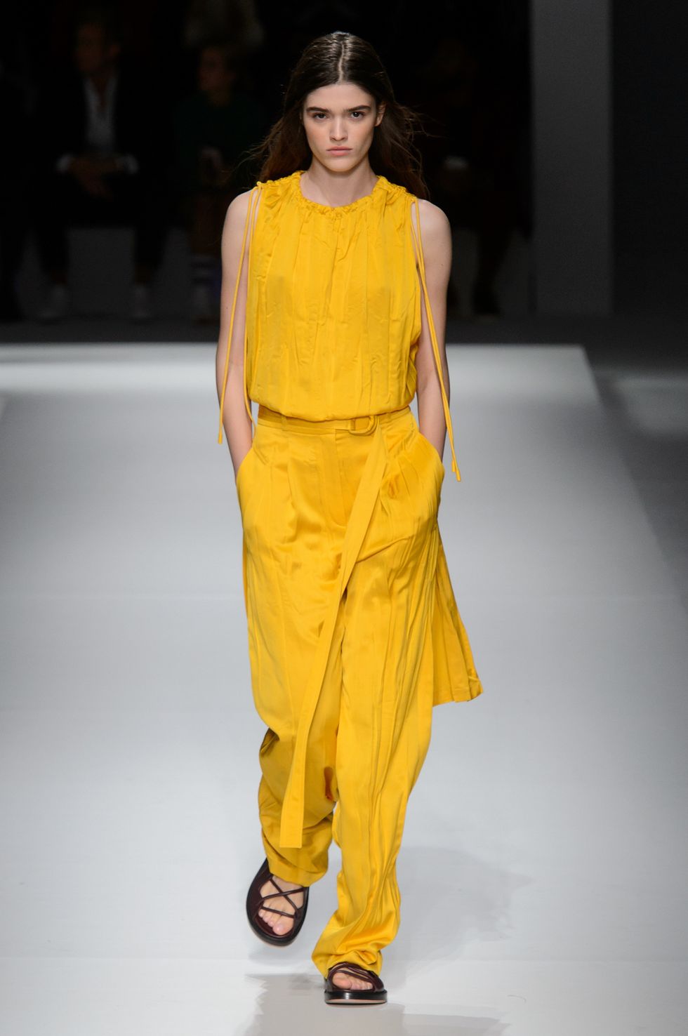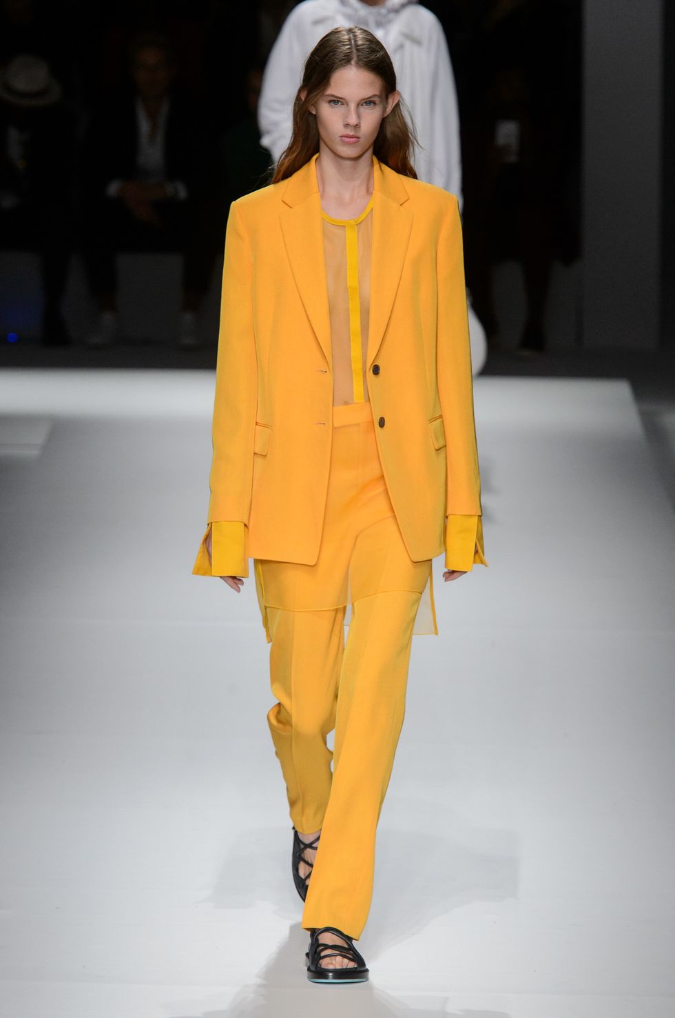 Spring 2019 marks Boss's first season without Jason Wu as its creative director. The German brand presented a team-designed collection at Basketball City in Manhattan's Lower East Side yesterday as celebrities including model Barbara Palvin, Dylan Sprouse (who are a hot new couple), Emma Roberts, Jamie Dornan, and Henry Golding sat front row. For the first time in its history, the label showed menswear and womenswear side by side.