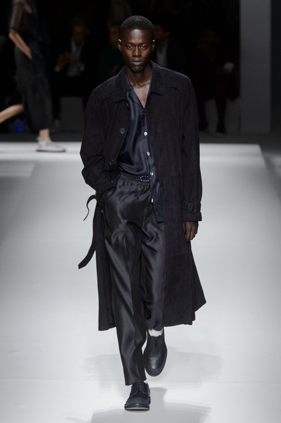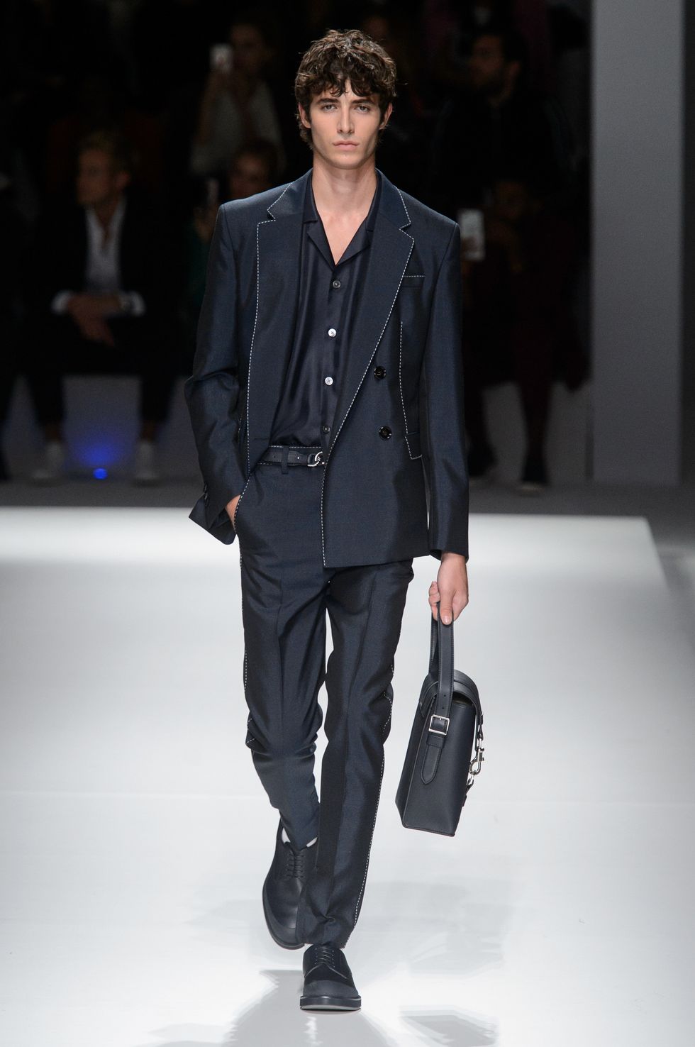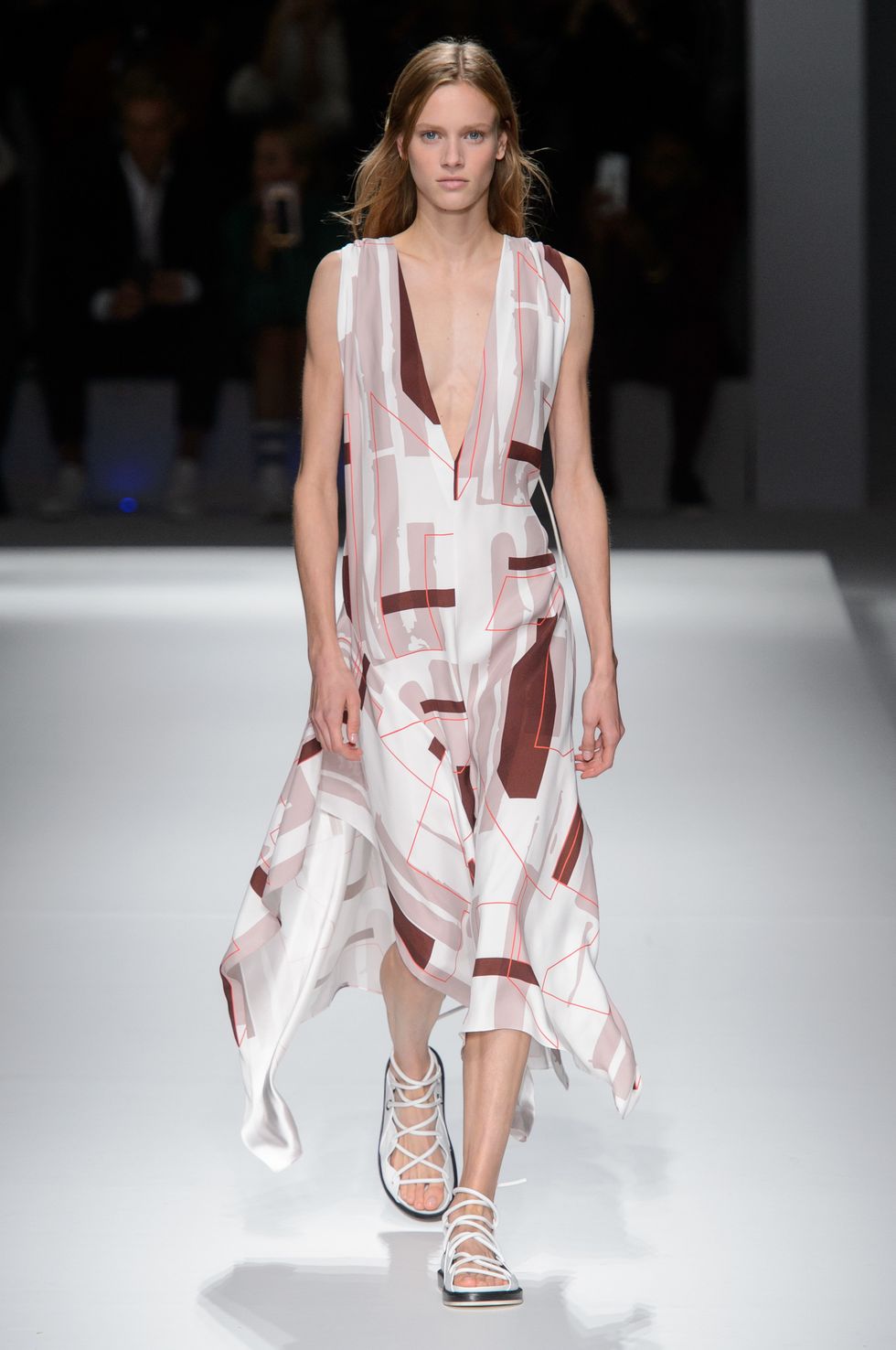 Spring 2019 marks Boss's first season without Jason Wu as its creative director. The German brand presented a team-designed collection at Basketball City in Manhattan's Lower East Side yesterday as celebrities including model Barbara Palvin, Dylan Sprouse (who are a hot new couple), Emma Roberts, Jamie Dornan, and Henry Golding sat front row. For the first time in its history, the label showed menswear and womenswear side by side.