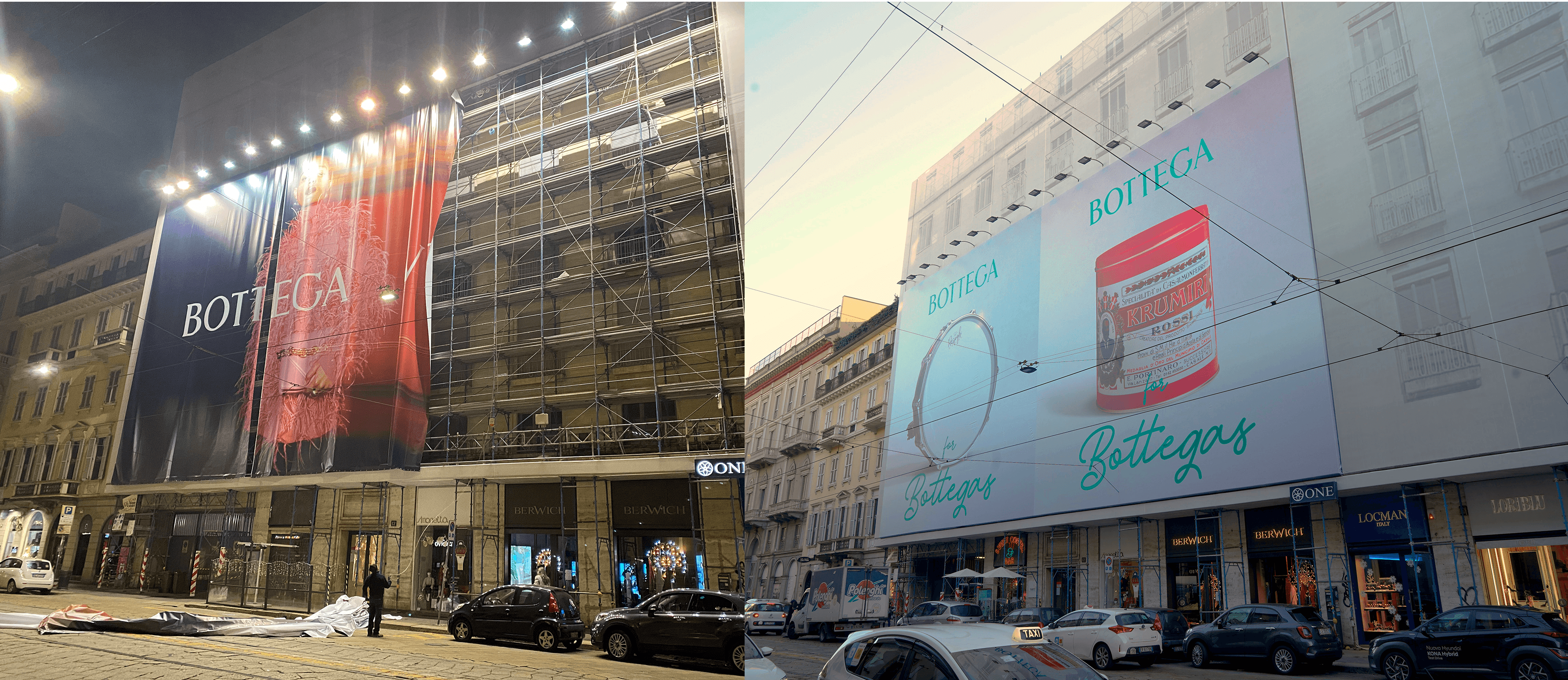 A Bottega Veneta advertisement in Milan being replaced with the Bottega for Bottegas project.