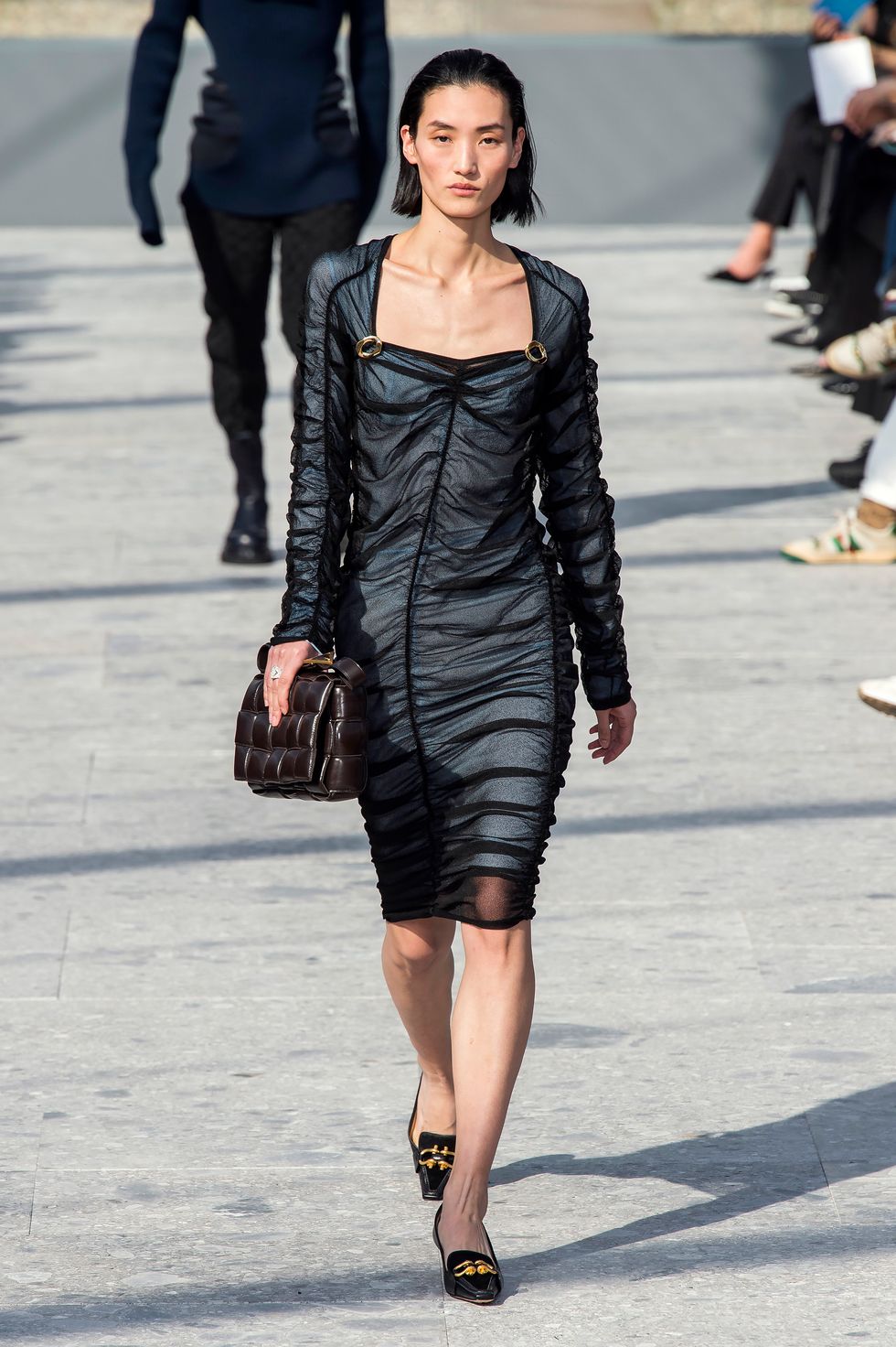 In Milan, creative director Daniel Lee presented his very first runway show for Bottega Veneta. Lee, who joined the label last year, is a Central Saint Martins Graduate who was worked with Maison Margiela, Balenciaga, Donna Karan and Celine in the past. Since he debuted his work in 2018, multiple sources (like Business of Fashion and i-D) have compared his pieces as filling the gap of modern, wearable pieces that Phoebe Philo left behind with Old Celine. But we think he's more so revitalizing the legendary Bottega Veneta brand as one of the coolest Italian labels to watch. Here's everything you need to know about the co-ed fall 2019 collection.