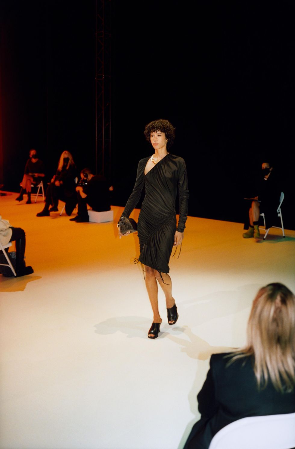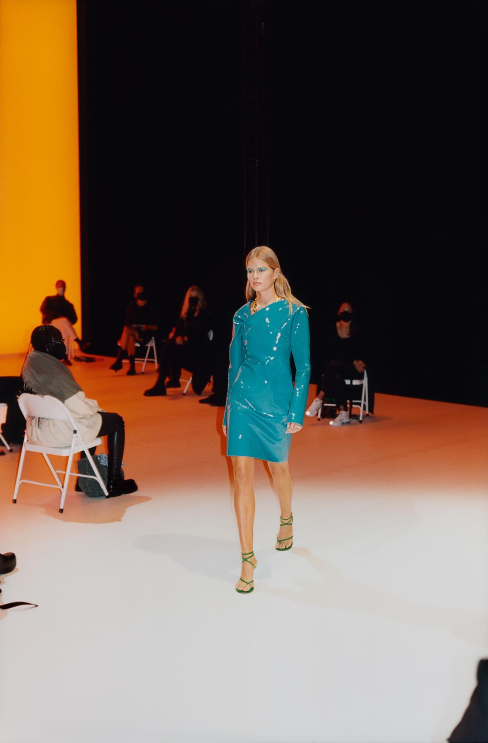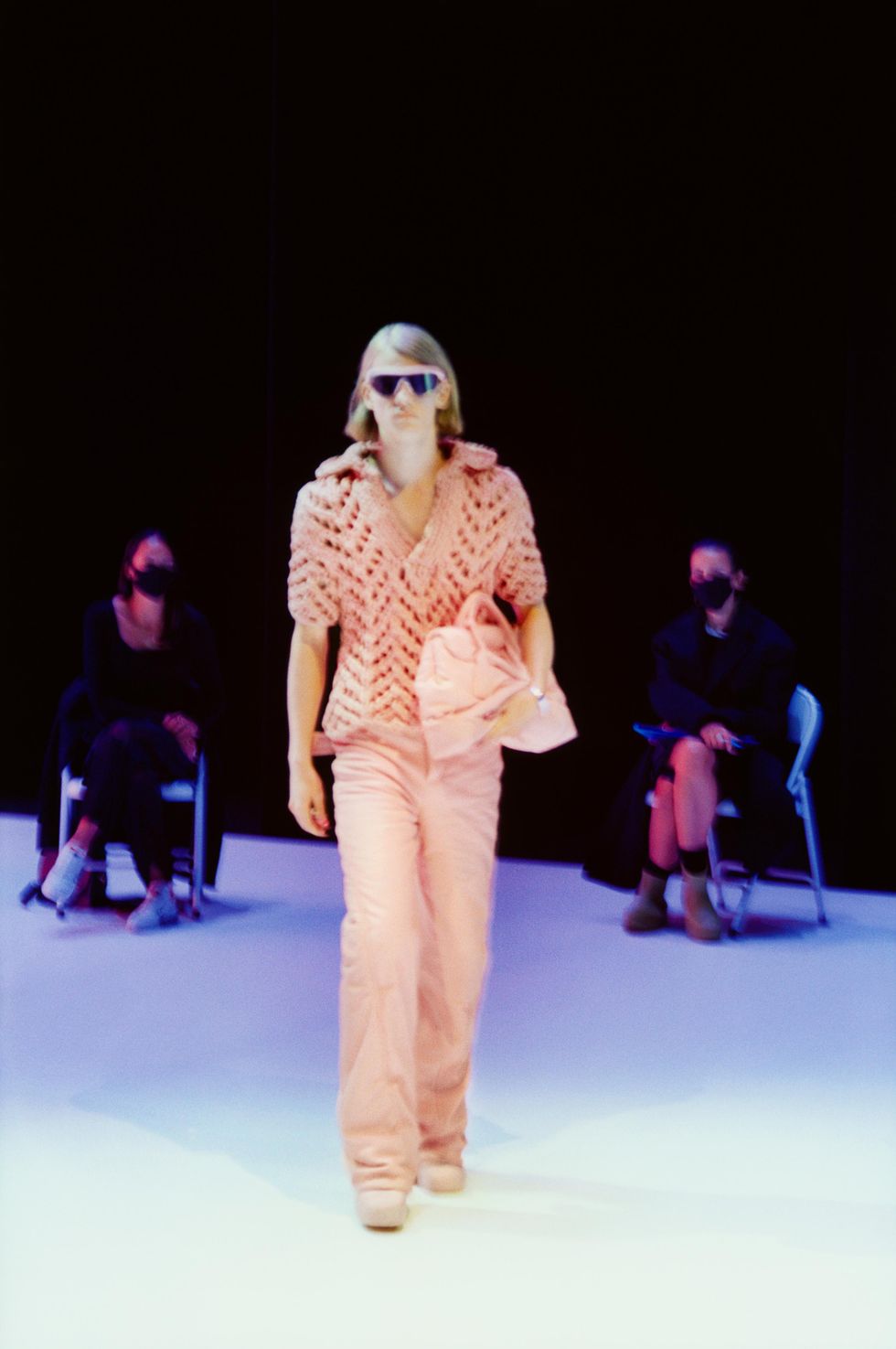Now, we finally know went down at the October showcase. The brand released a video this morning of the event, where guests each sat in socially distant chairs spaced several feet apart in the green-lit venue. It was Creative Director Daniel Lee's first time presenting a BV collection in London as he skipped his usual Milan Fashion Week slot this past September.