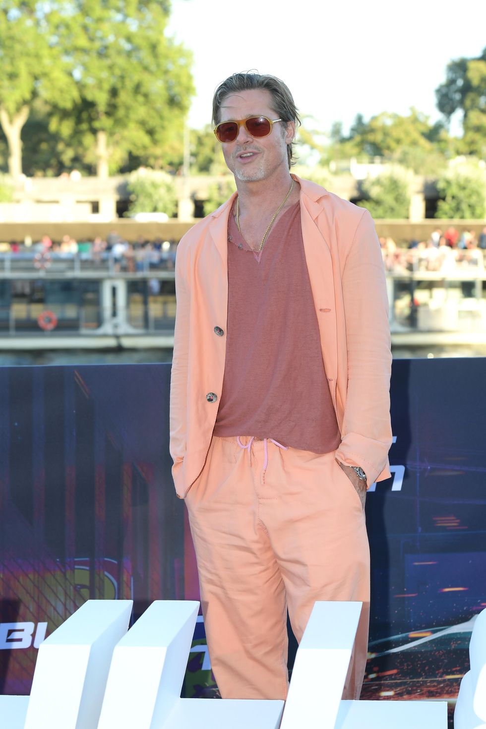 For the Paris premiere, he went for a more subdued gray linen ensemble but rocked a cantaloupe version for the photocall and went with a turquoise number for the UK stop. Pitt's upcoming action flick also stars Joey King, Aaron-Taylor Johnson and Sandra Bullock.