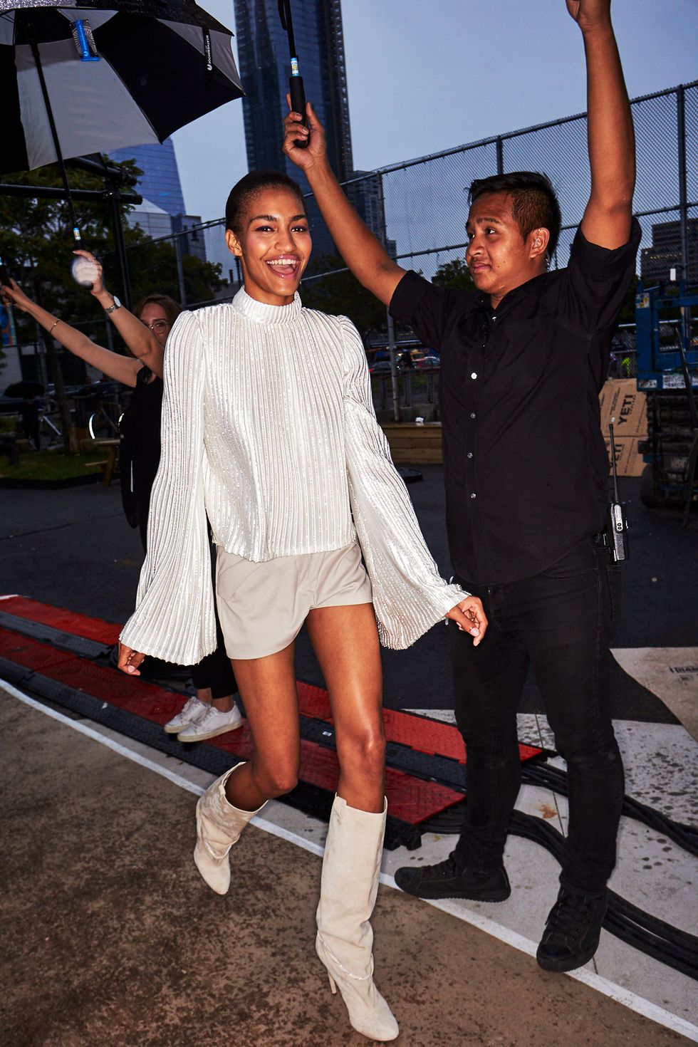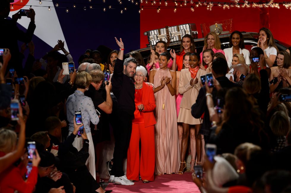 At the end of his show, Maxwell walked onto the magenta carpet runway with his mother Pam Wooley. Shortly after, the designer's entire team came out from backstage as guests and models cheered loudly, smiling from ear to ear. The heart-warming scene was only made warmer by a kiss and embrace between Maxwell and his husband.