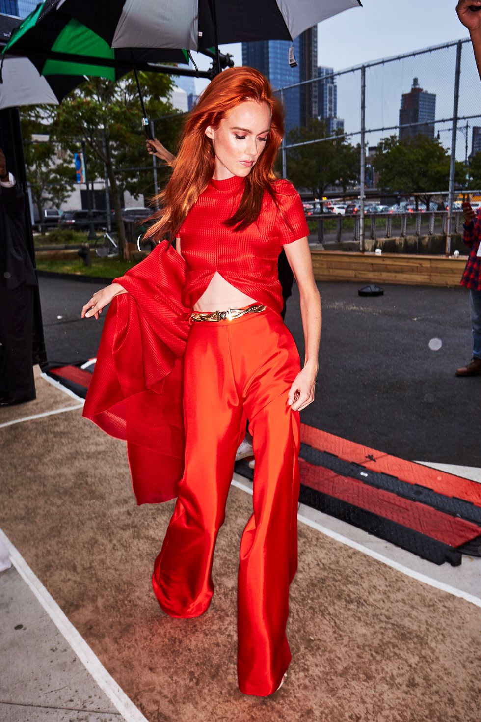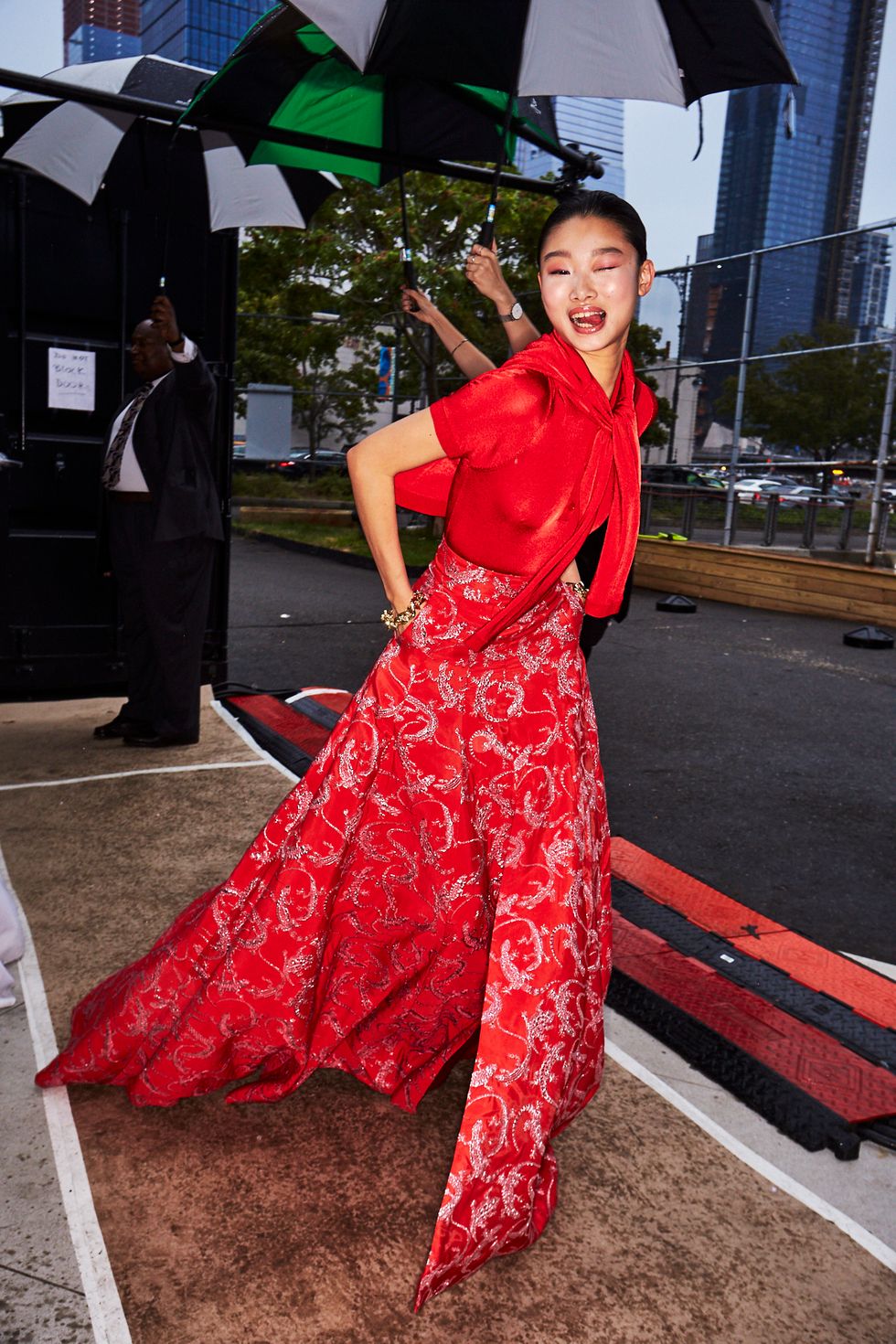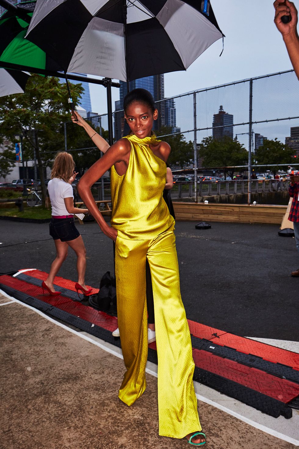 Born and raised in Longview, Texas, Brandon Maxwell grew up enamored by the glamourous women that passed through the clothing boutique where his grandmother worked. The designer shifted focus back to his home state and headed to the desert town of Marfa, Texas (the art destination with a non-fuctional, installation Prada boutique) to design his spring collection. Eschewing overt references like cowboy boots and fringe jackets, the designer painted an honest picture of Texas power dressing (think 1980s oil-boom style in a Dallas country club) in bright red, pink, yellow, and aquamarine.